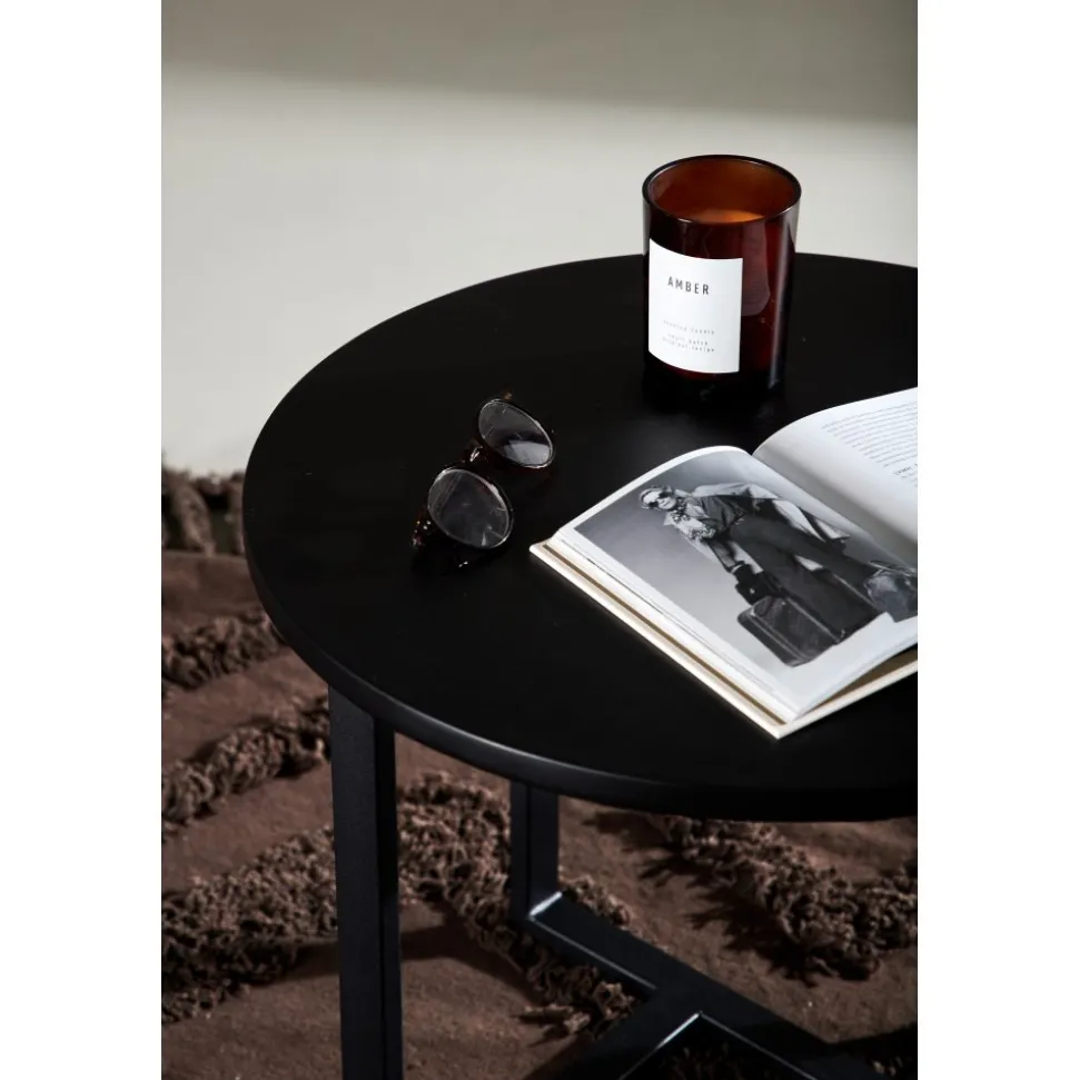 Soffbord tillverkat med en rund bordsskiva i svart MDF och smal stomme som sammanlänkas i botten. Placera ovanpå den mysiga mattan och pryd med vackra ljusstakar för att skapa en trivsam atmosfär i vardagsrummet.