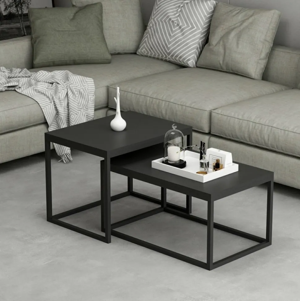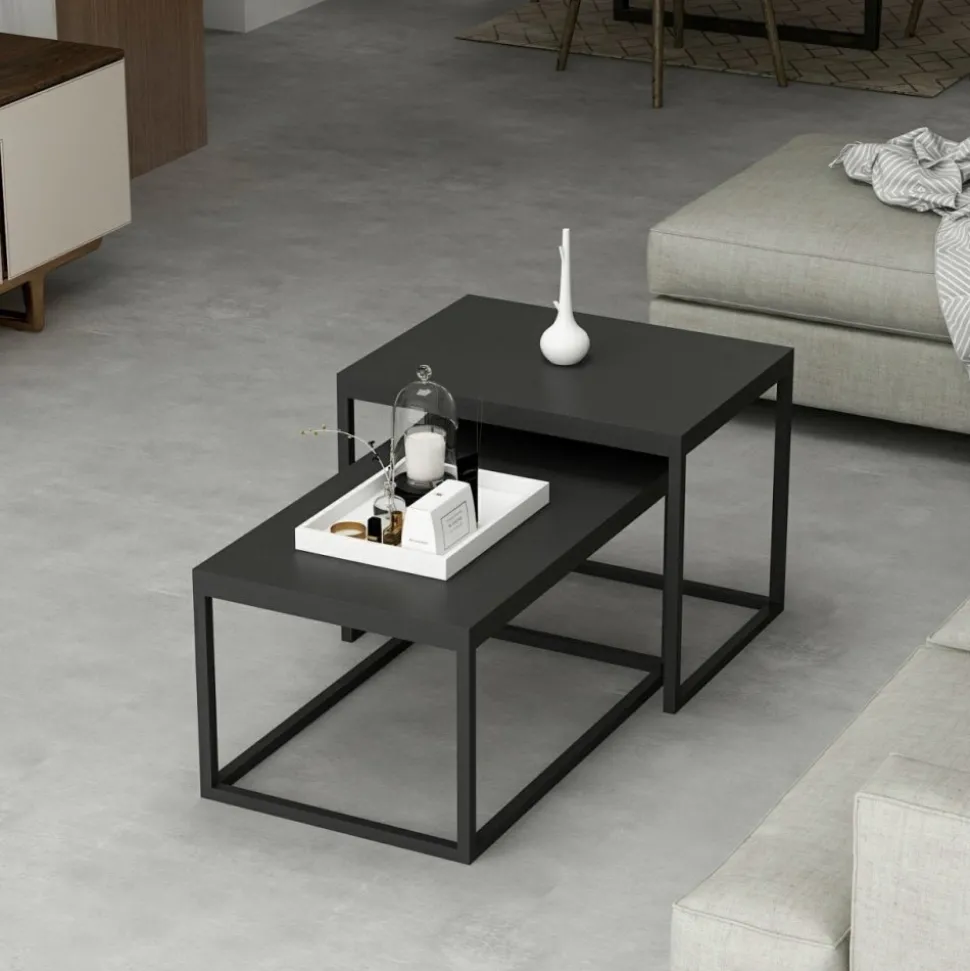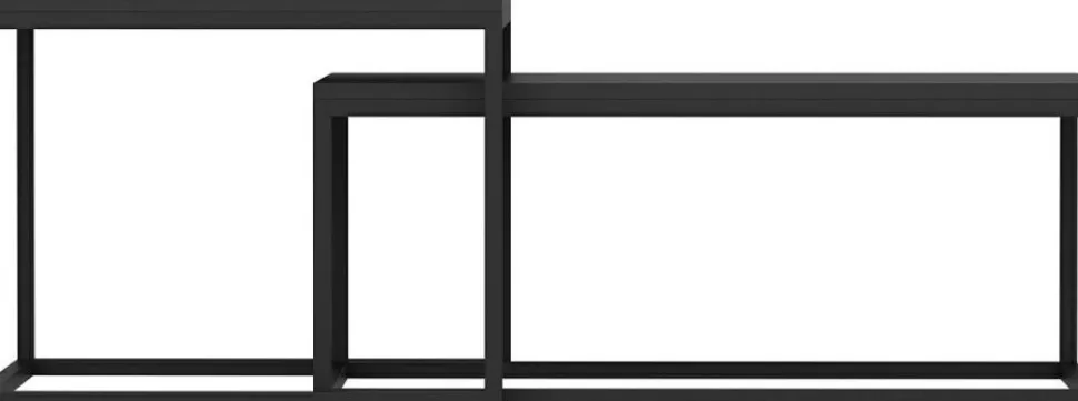 Satsbord av trä med ben av metall. 2 st.