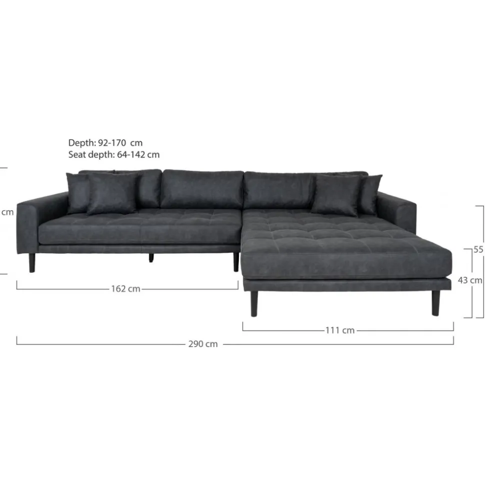 Divansoffa av bokträ med klädsel av microfibertyg. Levereras omonterad.