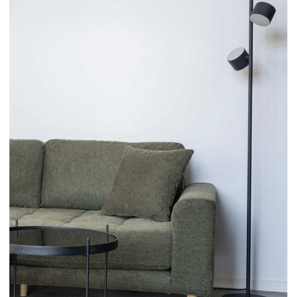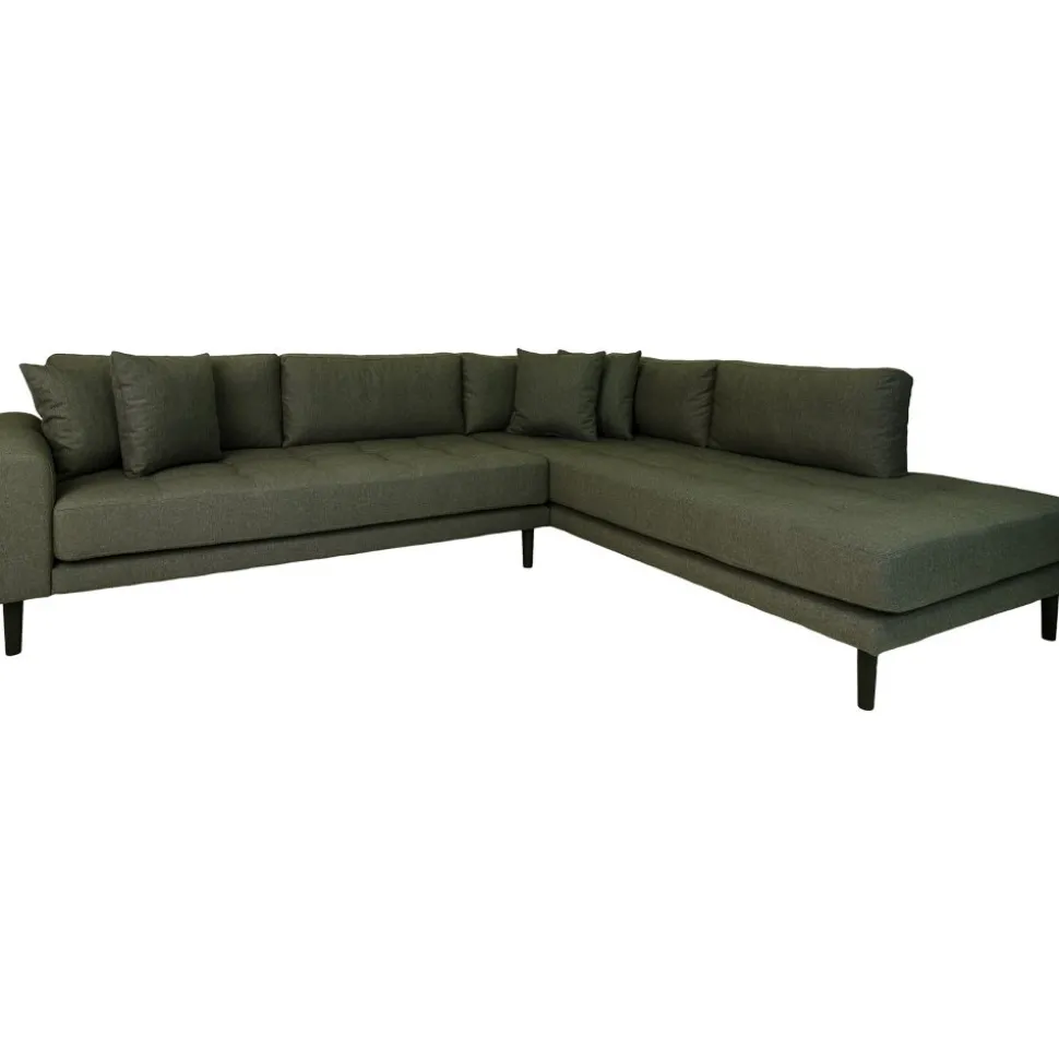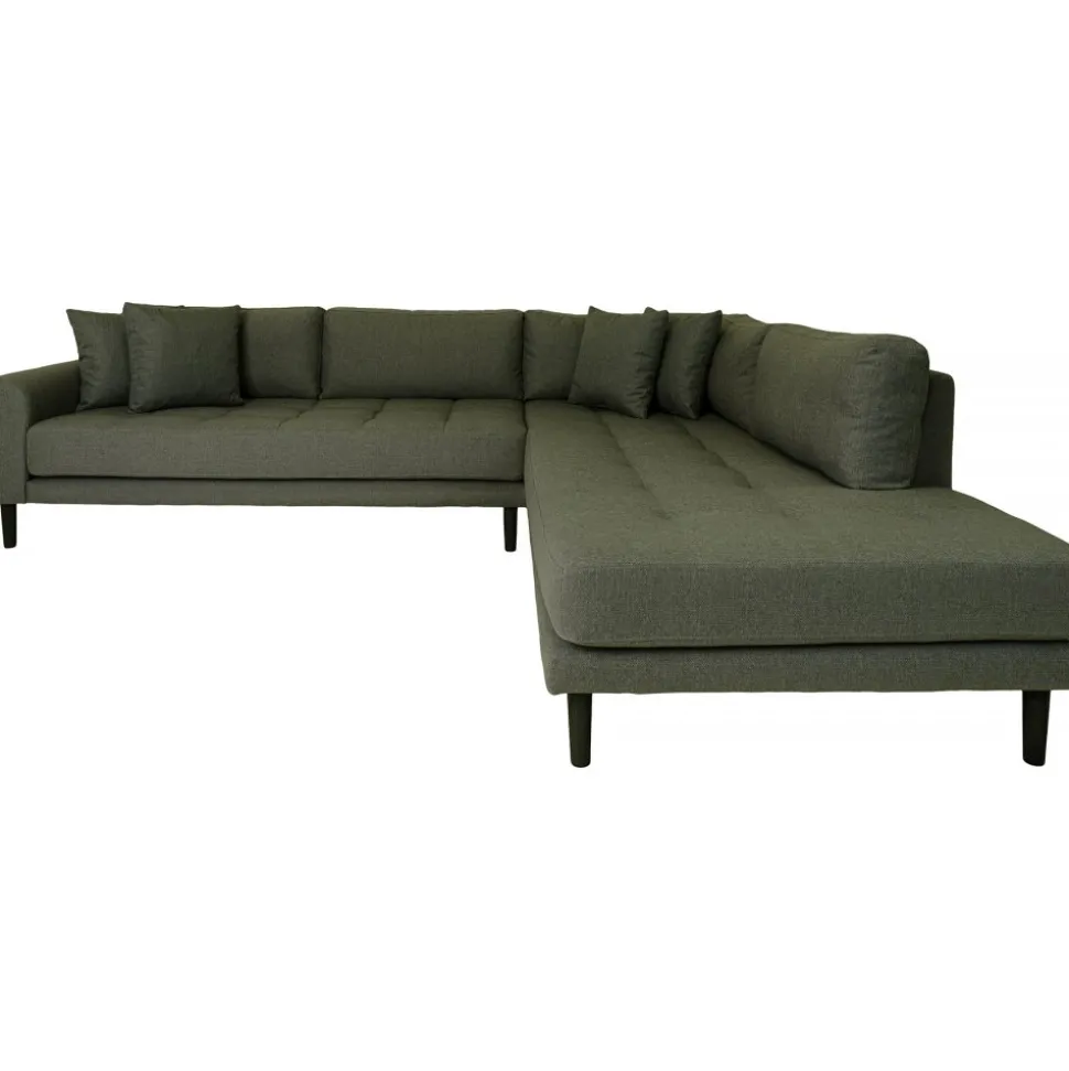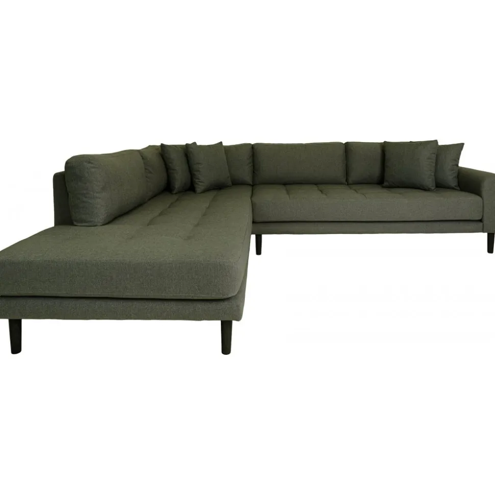 Soffa av ek och furu med klädsel av polyester och stoppning av polyuretan. 4 st prydnadskuddar ingår. Viss montering krävs.