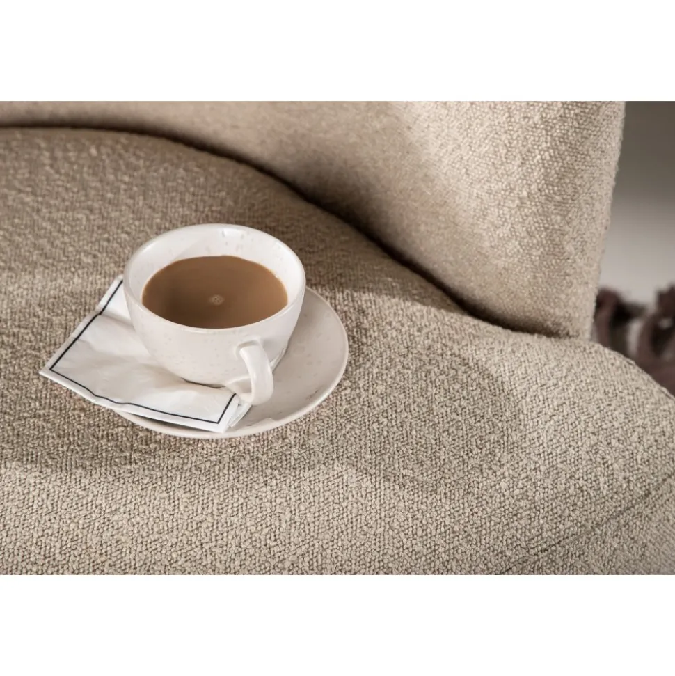 Modern fåtölj, designad helt efter trenderna och med fokus på hög komfort! Den här fåtöljen har en inbjudande utformning och generöst sittdjup som bjuder in till långa avkopplande stunder. Sitsen är helklädd i beige boucletyg med två djuphäftade knappar i ryggen och stolsbenen är lätt utsvängda i valnötsfärgat stål. Placera solitär i läshörnan eller tillsammans med soffgruppen för att skapa plats för fler gäster! Levereras omonterad.