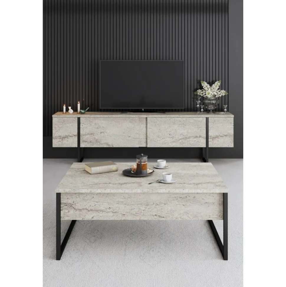 Marmorskiva Ø85 cm – Ljus marmor