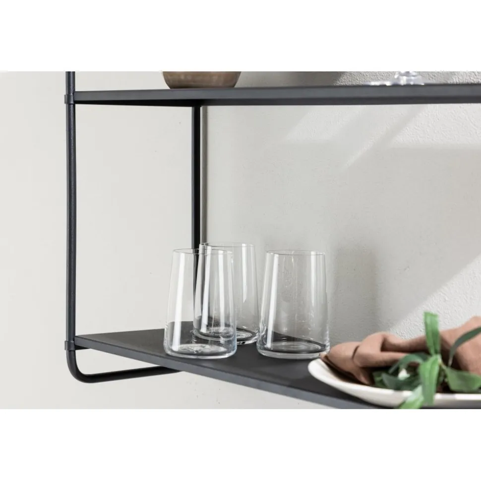Upplev tidlös elegans och smart förvaring med vår stilrena i svart järn från serien Lyon! Den här svarta pulverlackerade järnhylla kommer inte bara att organisera ditt utrymme, utan också låta dig uttrycka din personlighet på ett subtilt och elegant sätt. Med en design som är tidlös och minimalistisk passar Lyon vägghylla perfekt in i en mängd olika inredningsstilar. De rena linjerna och neutrala färgen smälter samman sömlöst med din befintliga inredning, vilket skapar en atmosfär av enkel elegans. Tre hyllplan ger dig gott om utrymme att organisera och visa upp dina favoritprylar. Ordning och reda har aldrig varit så enkelt – från böcker till växter till personliga skatter, allt har sin plats på Lyon hyllan. Häng upp Lyon på väggen och se hur den förvandlar rummet till en mysig oas. Lyon vägghylla är mer än bara förvaring – den är en investering i stil och funktion. Den finns även i en beige kulör och kommer i två olika storlekar för att bäst anpassa sig efter dina önskemål! Levereras omonterad.