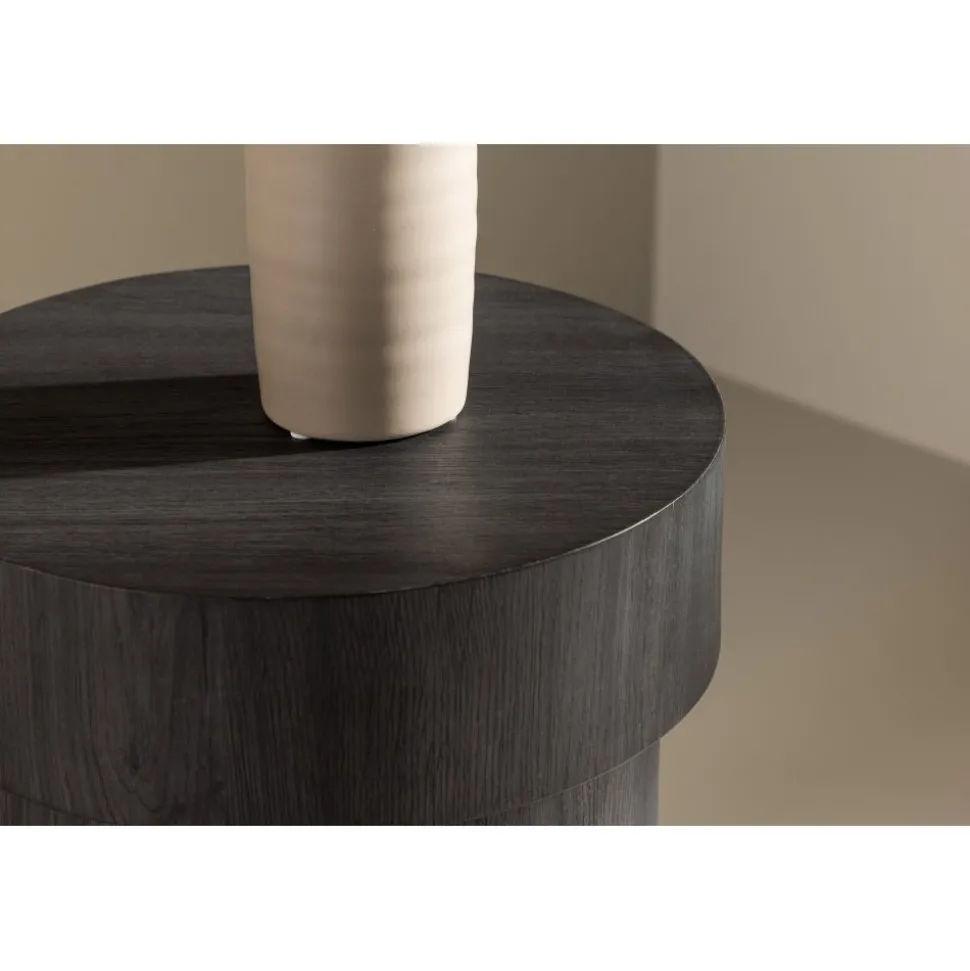 Låt oss introducera Malung – det stilrena sidobordet som lyfter din heminredning till nya nivåer av modern elegans. Med en diameter på 35 cm och en höjd på 45 cm passar detta perfekt bredvid din favoritfåtölj eller soffa för att ge en praktisk och stilfull förvaringslösning. Tillverkat av svart MDF, strålar Malung med en minimalistisk design som ger en sofistikerad touch till varje rum. Med dess enkla och eleganta utseende kan det här sidobordet enkelt passa in i olika inredningsstilar och bidra till att skapa en modern och snygg atmosfär. Oavsett om det används för att placera en bok, en kopp kaffe eller en dekorativ ljusstake, är Malung sidobordet en oumbärlig inredningsdetalj som inte bara ger funktionalitet utan också en känsla av stil och stilnivå till ditt hem.