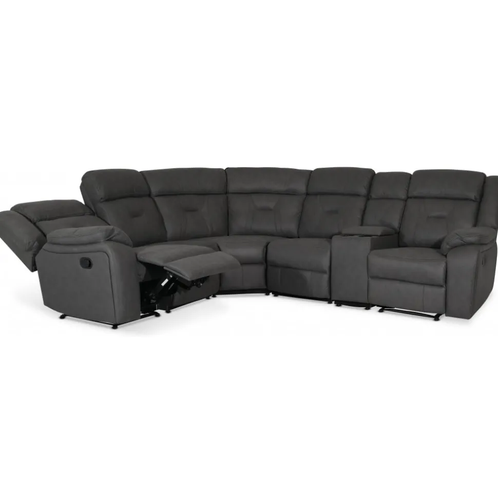 - Manhattan hörnsoffa – recliner och drickahållare – Grå PU
