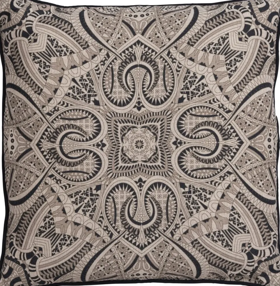 Prydnadskudde i bomull med mönster på framsidan. Baksida i enfärgat beige. Dragkedja på baksidan.