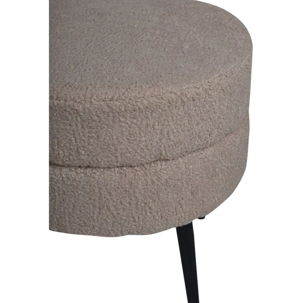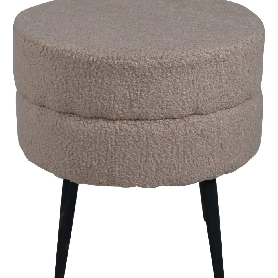 Sittpuff av trä och stål, klädd med polyestertyg.