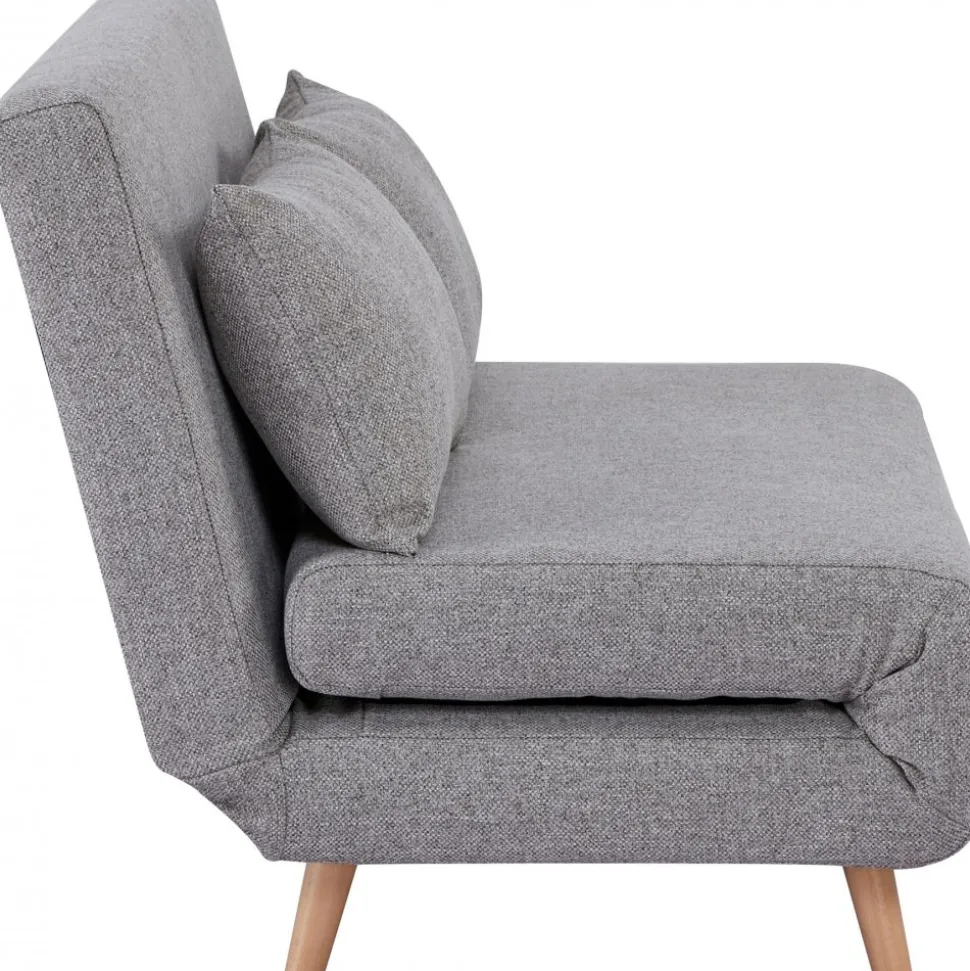 Bäddsoffa med klädsel av polyester och ben av björk. Levereras omonterad.