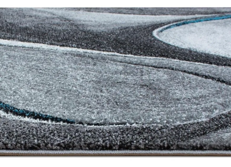 Arvel är en maskinvävd matta vars mönster har mjuka former i olika grå toner. Mattan har turkosa detaljer som ger en snygg kontrast mot de grå tonerna. Arvel är gjord i carvingteknik, vilket innebär att den är gjord med utskärningar för att på så sätt få färger och detaljer mer framträdande.