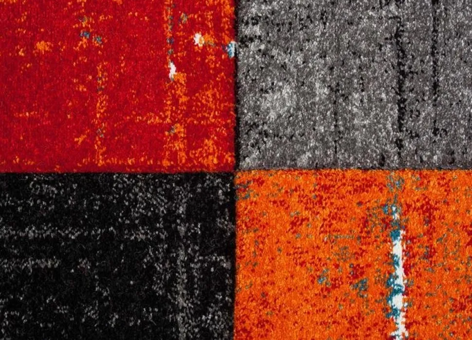 Aversa är en frizematta som har ett snyggt rutmönster och går i färgerna orange, röd, vit och olika toner utav grått och svart. Mattan har detaljer som påminner om färgstänk, vilket skapar en gammeldags och sliten look. Nougat har en kort skuren lugg och är maskinvävd i polypropylen, vilket är ett syntetmaterial som är lätt att rengöra och hålla fri ifrån ludd och damm. Eftersom den har korta fibrer så tränger inte smuts in lika lätt som på en med längre fibrer och den har en hög resistens mot de flesta fläckar.