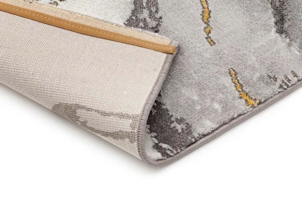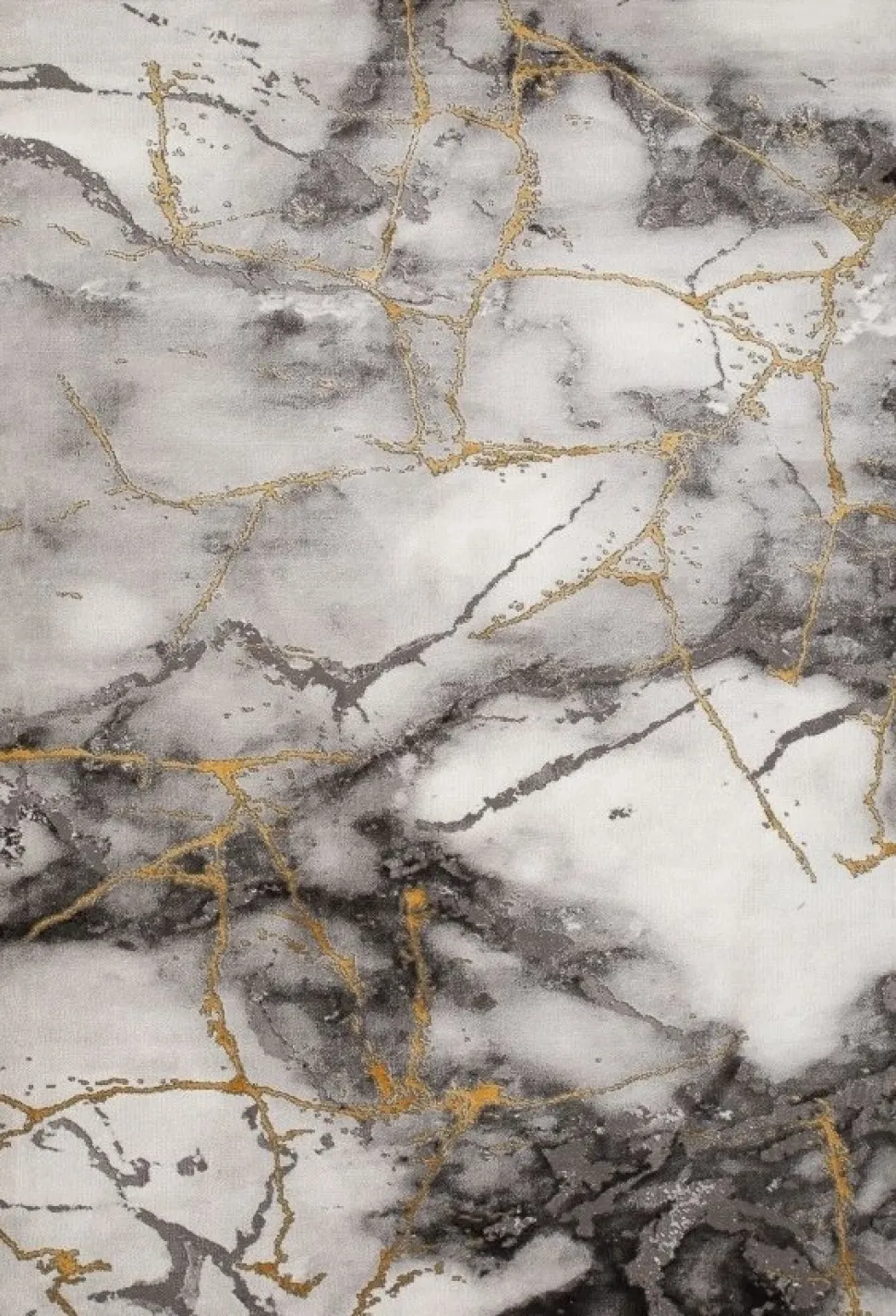 Mattans mönster för tankarna till marmor då den skiftar i olika grå toner, samt att den har mörkare partier som ger mattan ett djup.