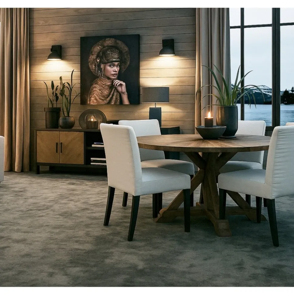 Palma Matbord är ett av Nordens mest massiva och rustikaste som går att få tag på. Generösa mått med 140 cm i diameter. Bordet är tillverkat av drivved som har färgskiftningar, gropar, sprickor och ojämnheter för att tillsammans med ett gediget hantverk skapa möbelns katraktär och unika värde. Det är gjort i naturvirke och kan få färgskiftningar med åren om både genom dess åldrande och genom vätskespillning! Även mindre sprickbildning kan förekomma när träet drar ihop sig. Varje möbel i Palma-serien väljs ut för hand och skapar ett unikt signum.