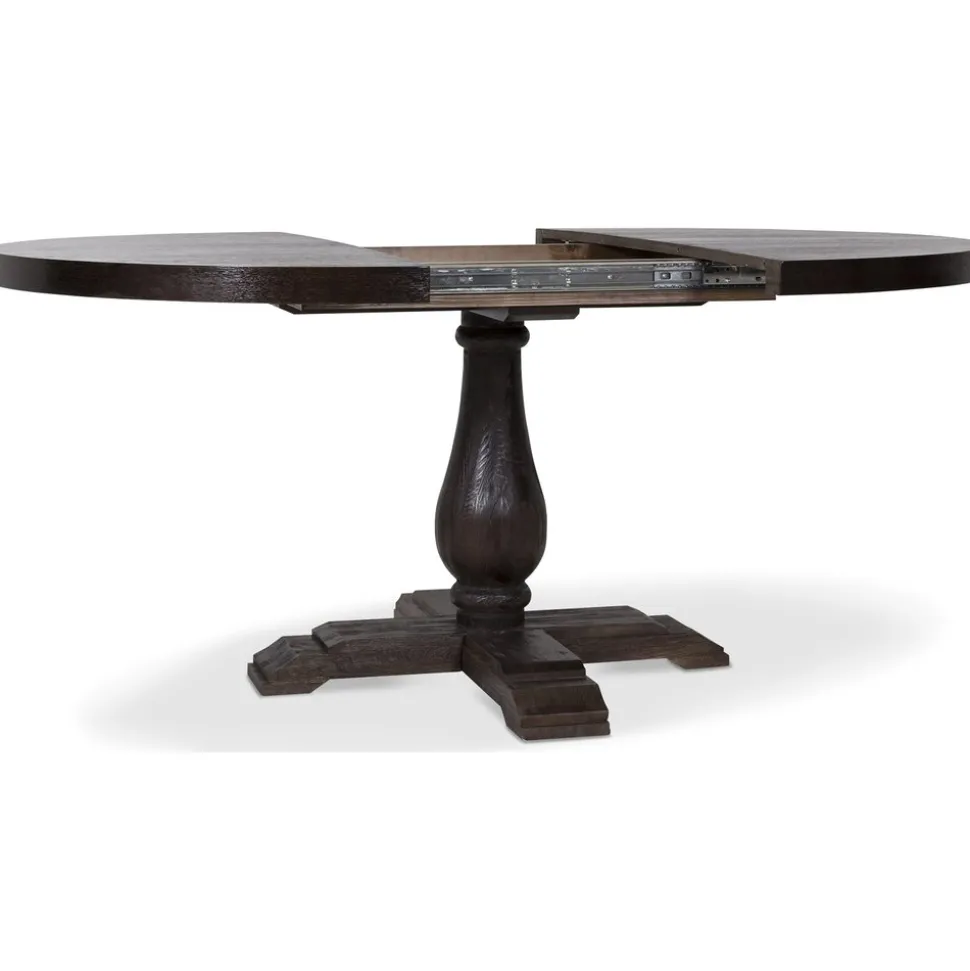 Lamier matbord är tillverkad på ett sätt för att få det där speciella vintage utseendet. Det trä som används har färgskiftningar, gropar, sprickor och ojämnheter för att tillsammans med ett gediget hantverk skapa möbelns karaktär och unika värde. Varje möbel i Lamier-serien skapar ett unikt signum. Bordet är 120 cm i diameter och går med den medföljande tilläggsskivan förlänga till ett ovalt bord som är 170 cm långt.