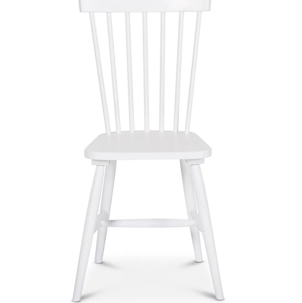 - Matgrupp runt matbord Ø120 cm och 4 vita pinnstolar – Rosvik