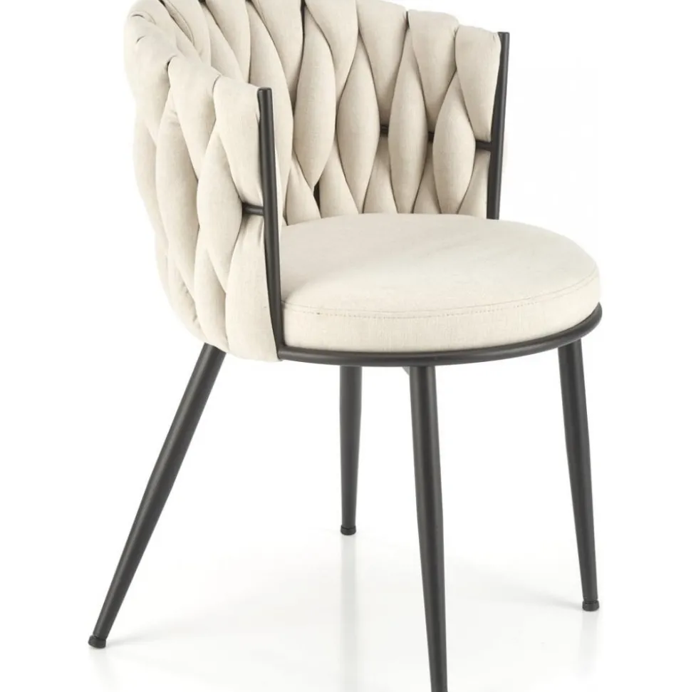 Matstol med underrede av pulverlackerad stål och klädsel av tyg.