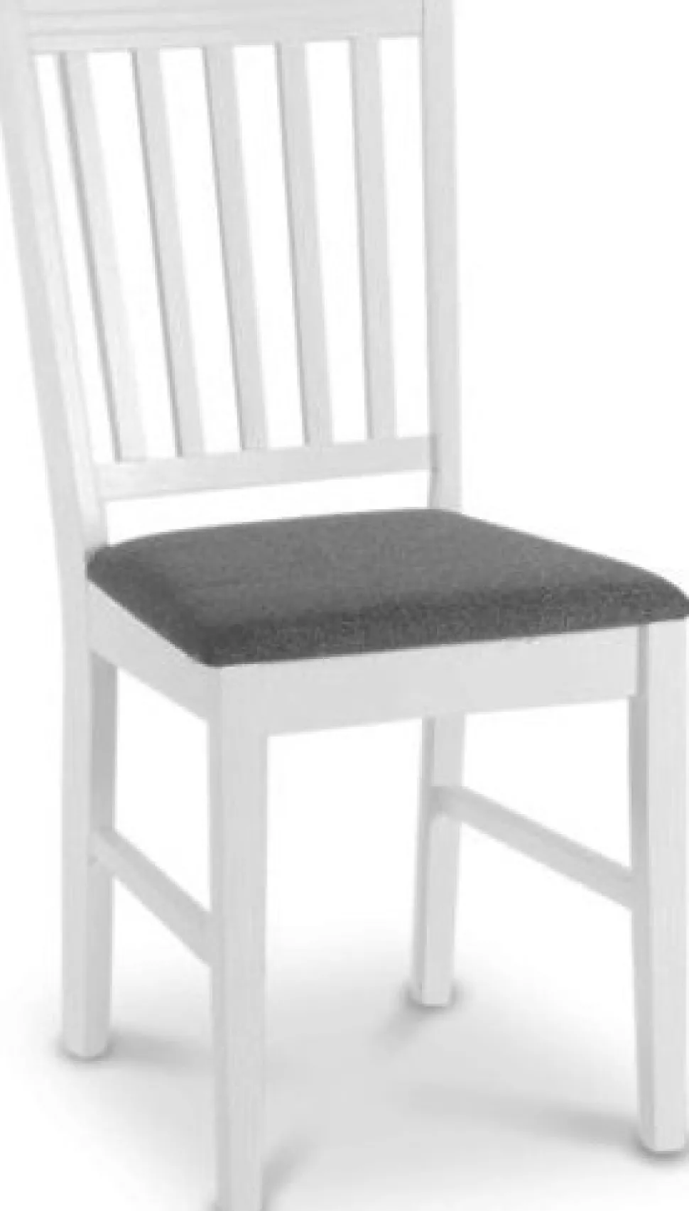 Den mjuka grå tygsitsen skapar en harmonisk kontrast till det vita träet och ger en inbjudande känsla. Med en sits på 45 cm höjd passar stolen perfekt till de flesta matbord och erbjuder en stabil och bekväm sittupplevelse. Den klassiska designen gör att Sandhamn stol smälter in i både moderna och traditionella hem.