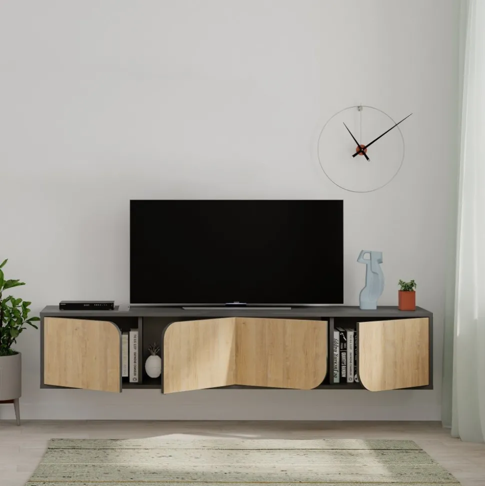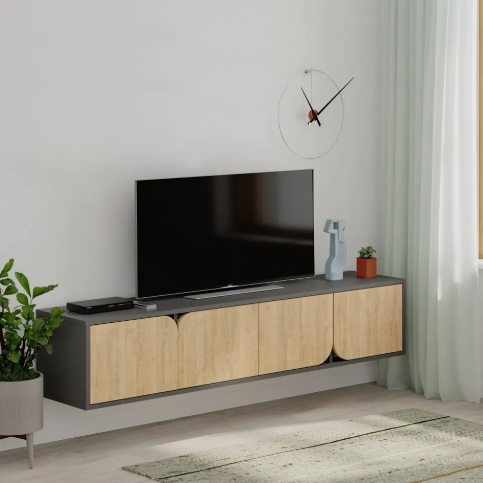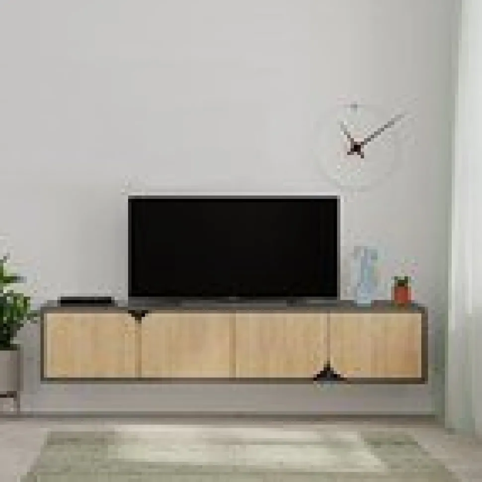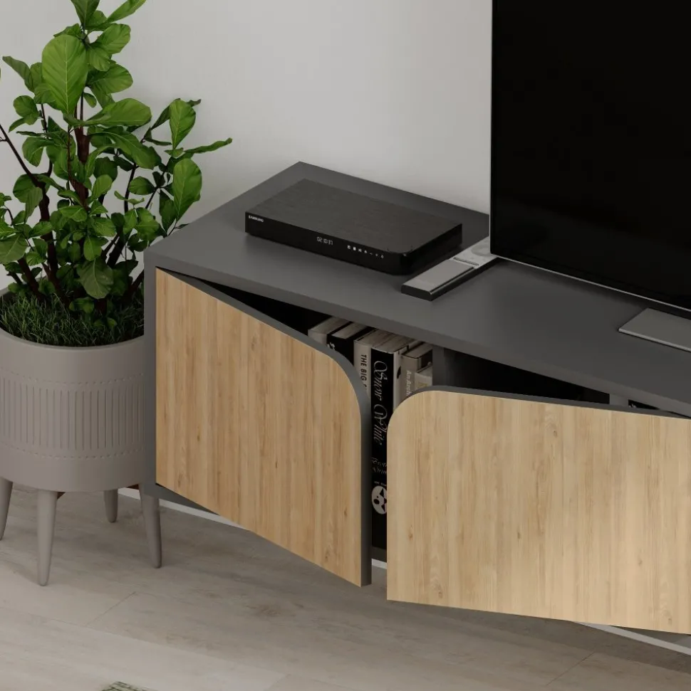 Mediabänk av melaminbelagd spånskiva.