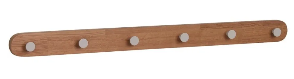Tidlös och praktisk kroklist i massiv och fanerad lackad ek. Sex krokar i metall. Kroklisten ingår i serien Metro.
