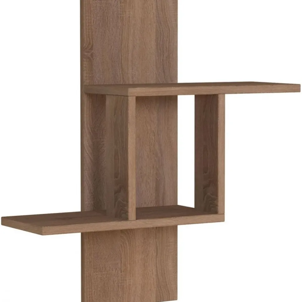 Vägghylla av melaminbelagd spånskiva.