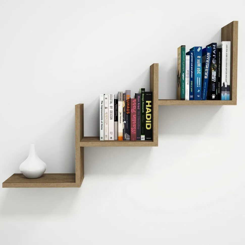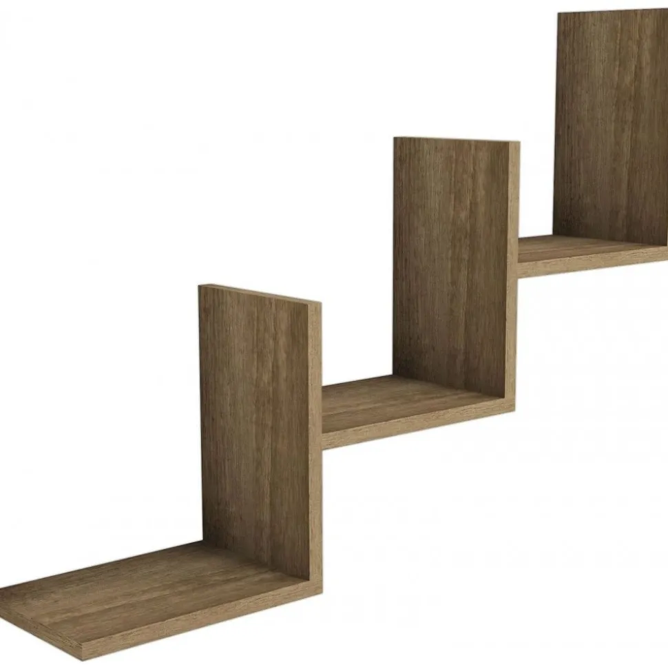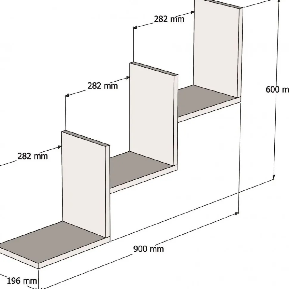 Vägghylla av melaminbelagd spånskiva.