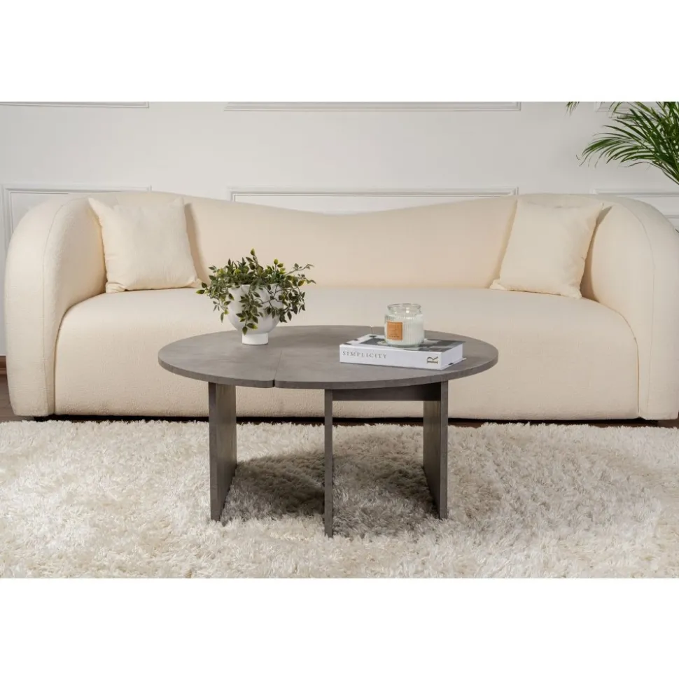 Soffbord av melaminbelagd spånskiva.