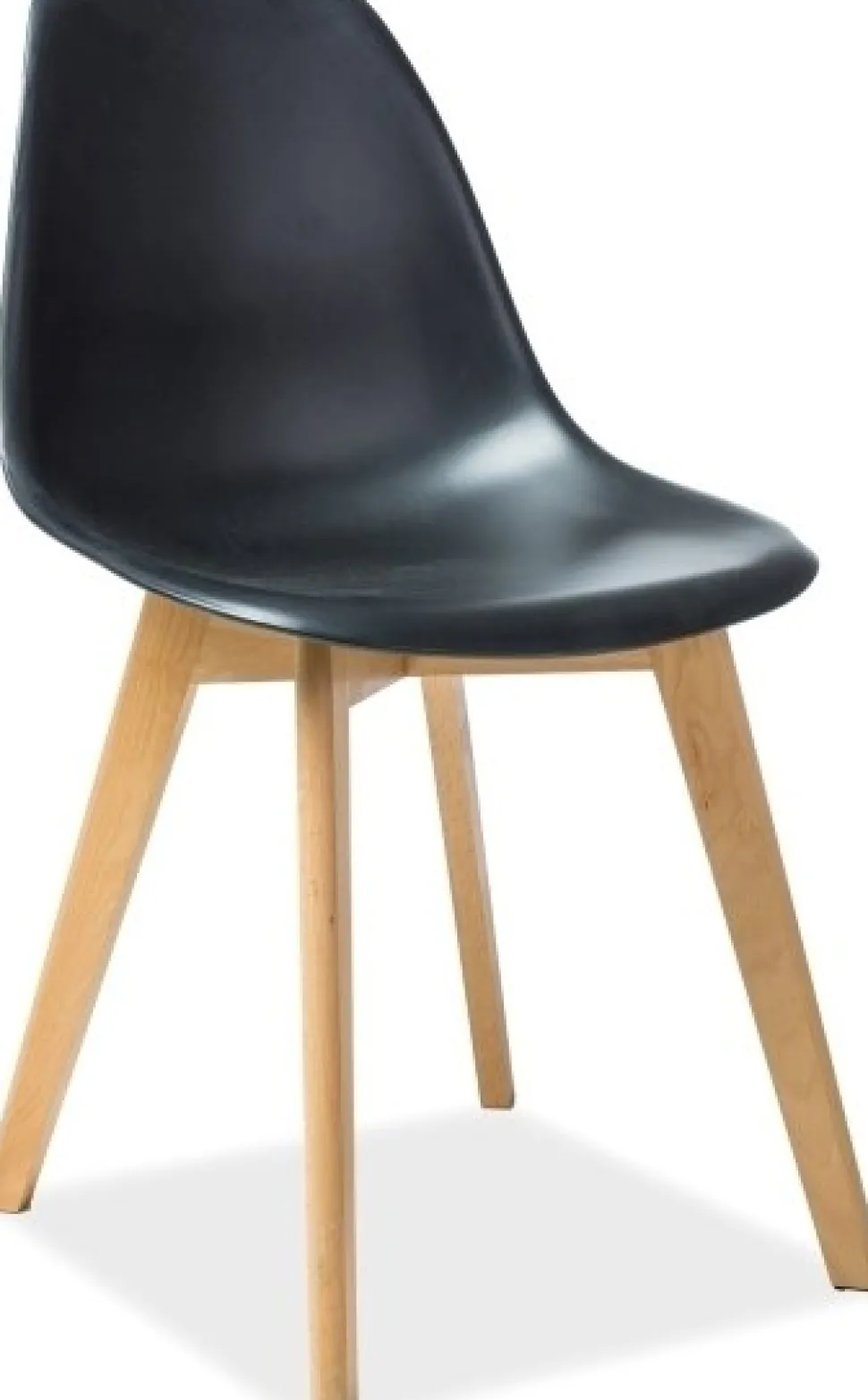 Matstol i bokträ och plast.