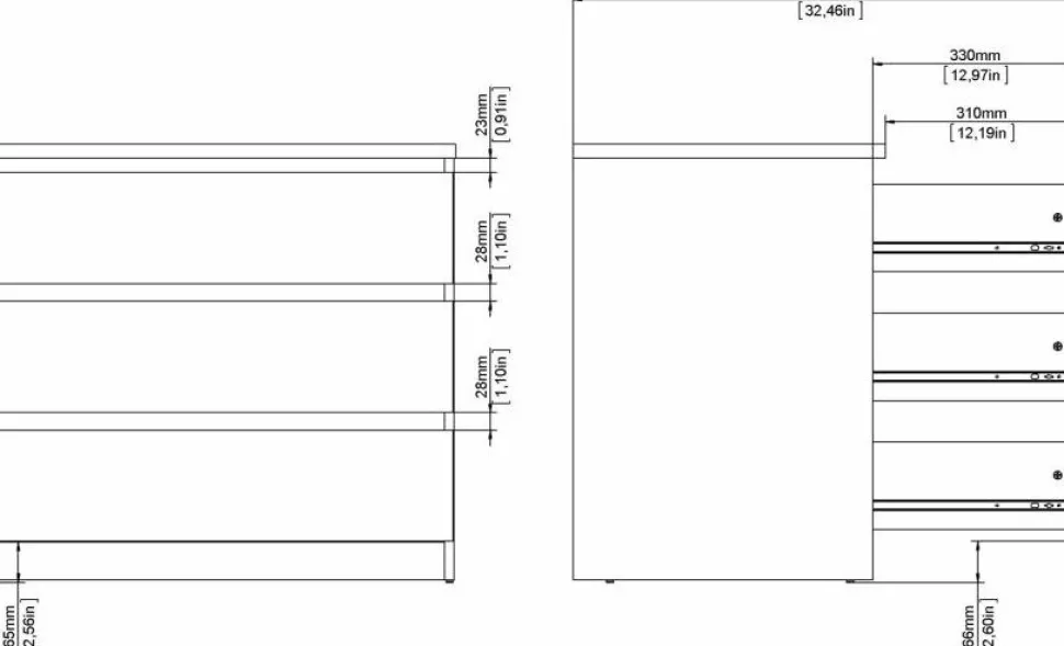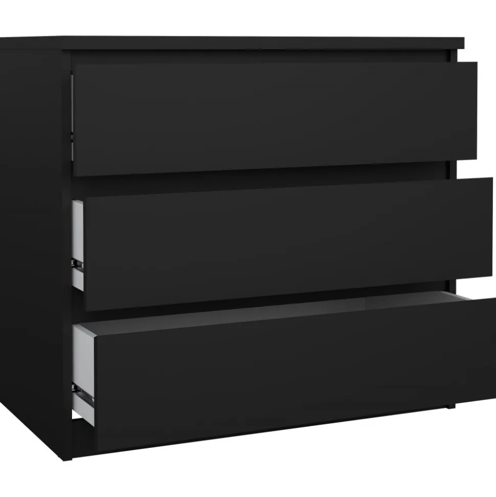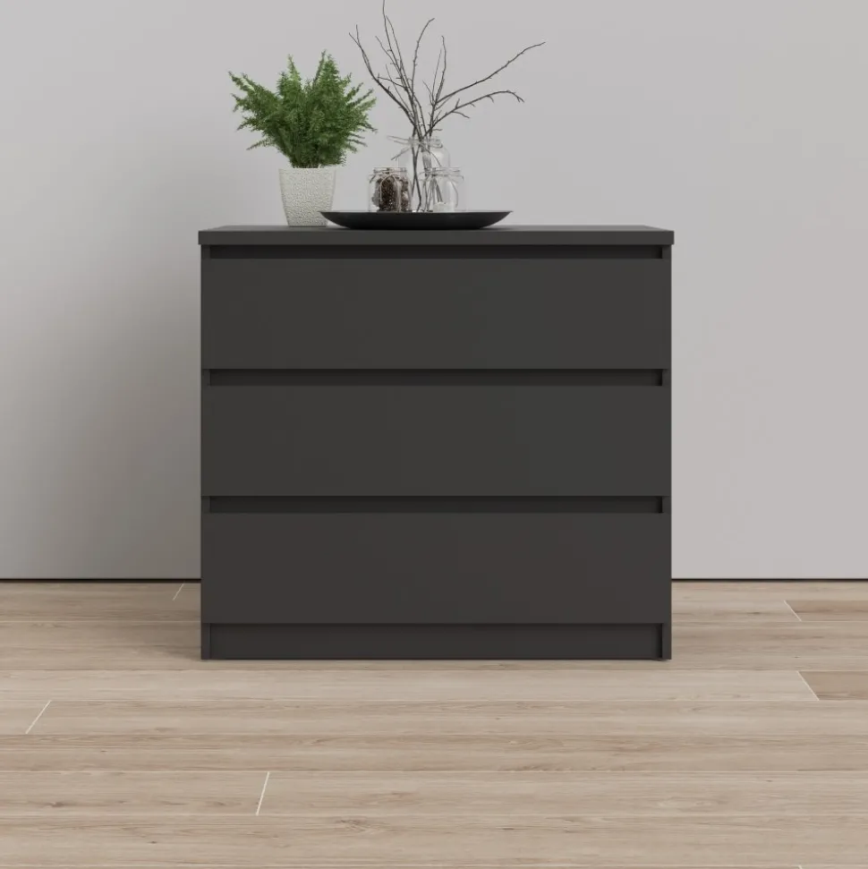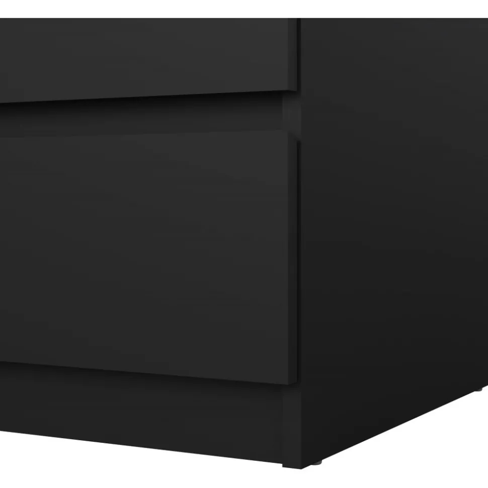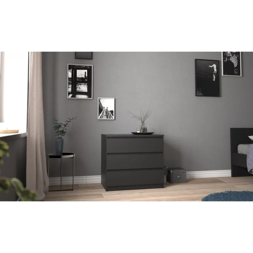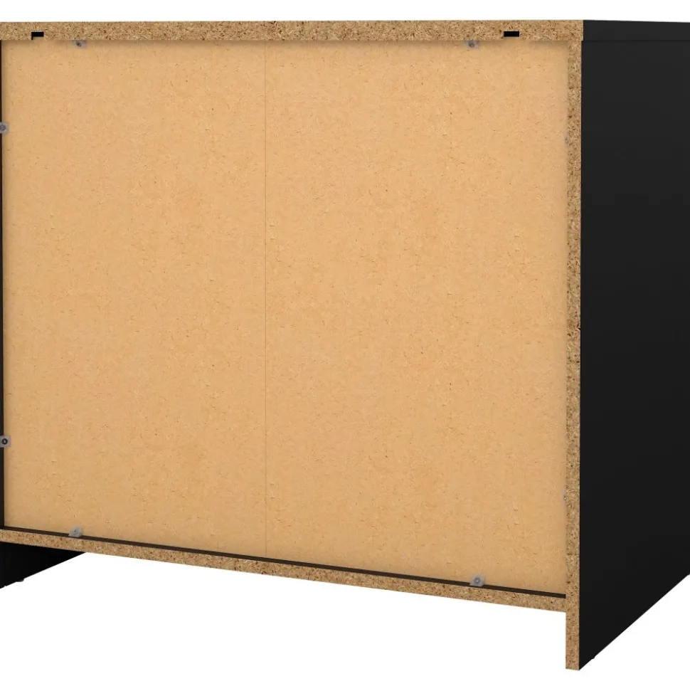 Byrå av trä med kantband av melamin och ABS-plast.