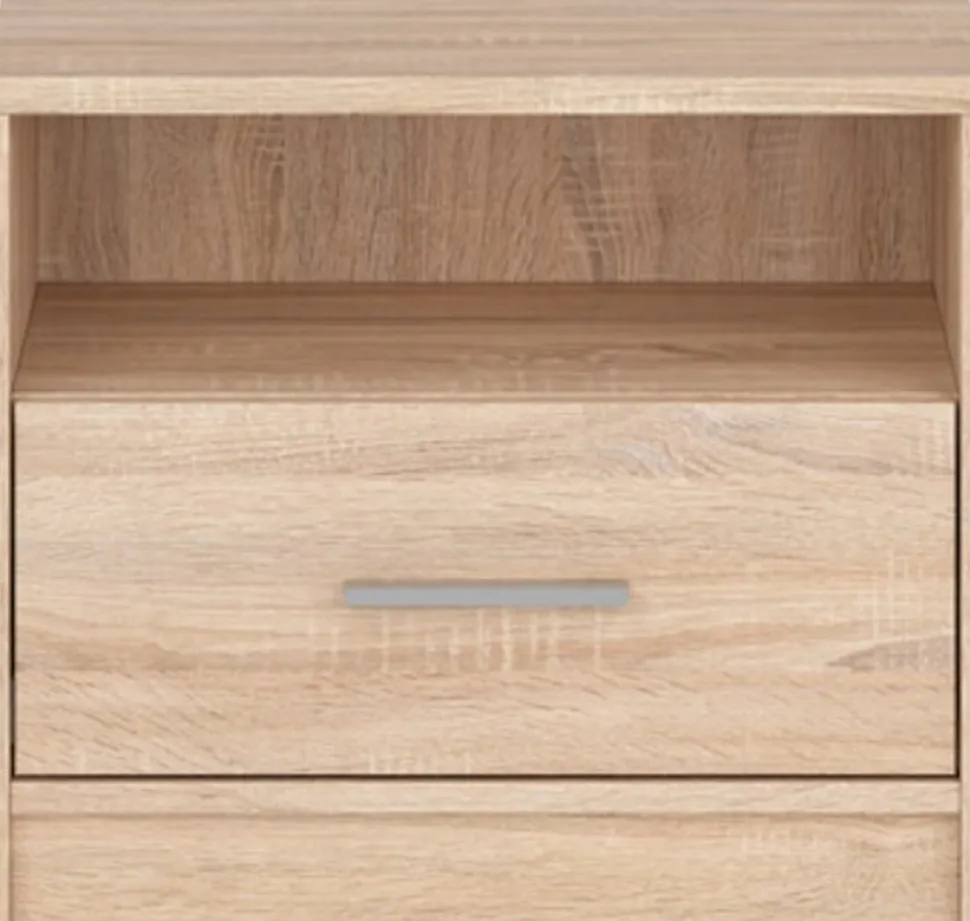 Sängbord av spånskiva.