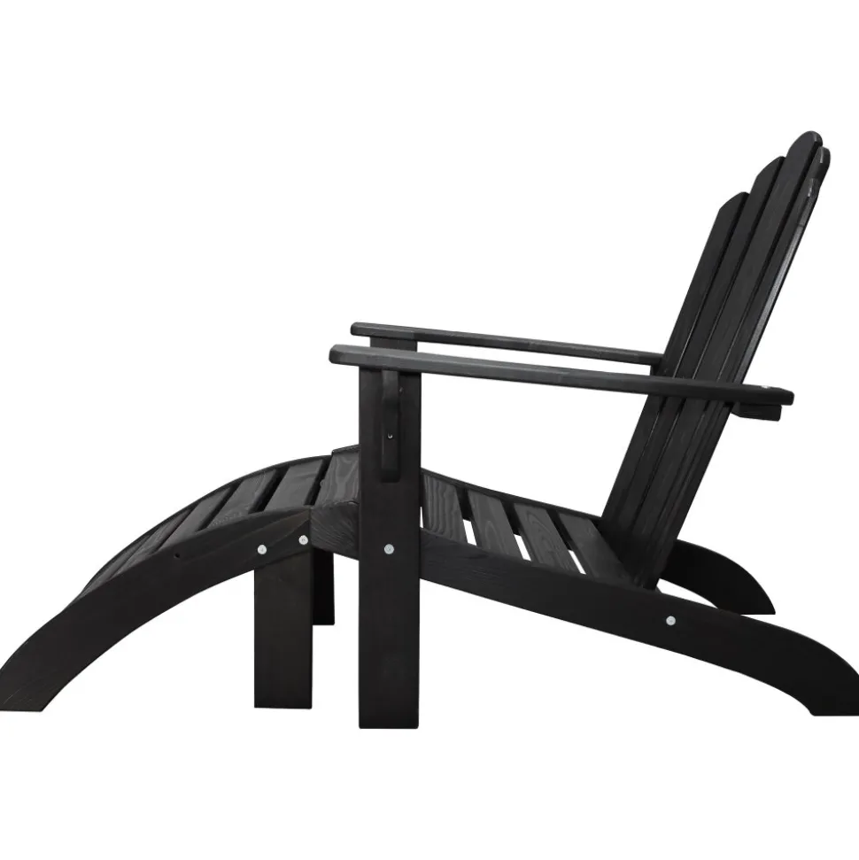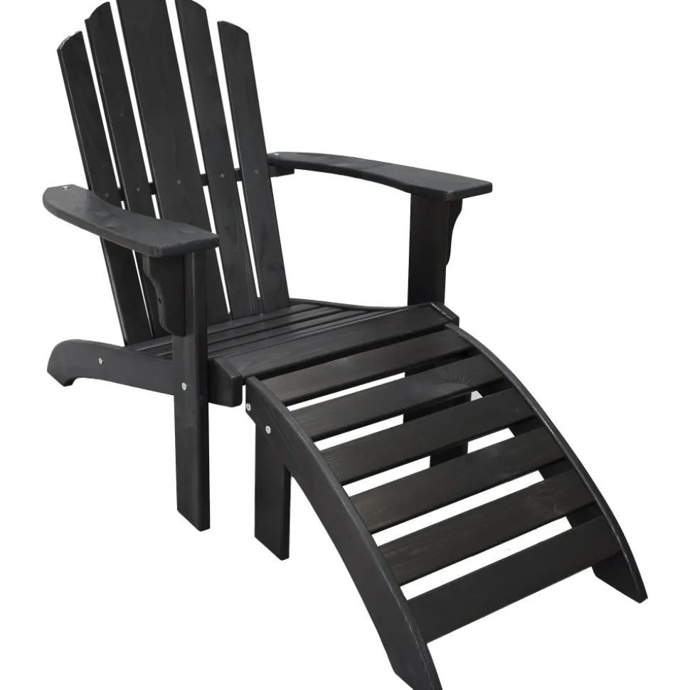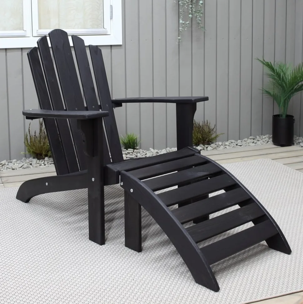 Däckstol i svartbrunt laserad furu. Dess avspända ryggvinkel och breda armstöd ger dig goda förutsättningar att koppla av i sommarvädret. En klassisk och rejäl utemöbel som lätt blir en favorit var den än står. Komplett med och fotstöd.