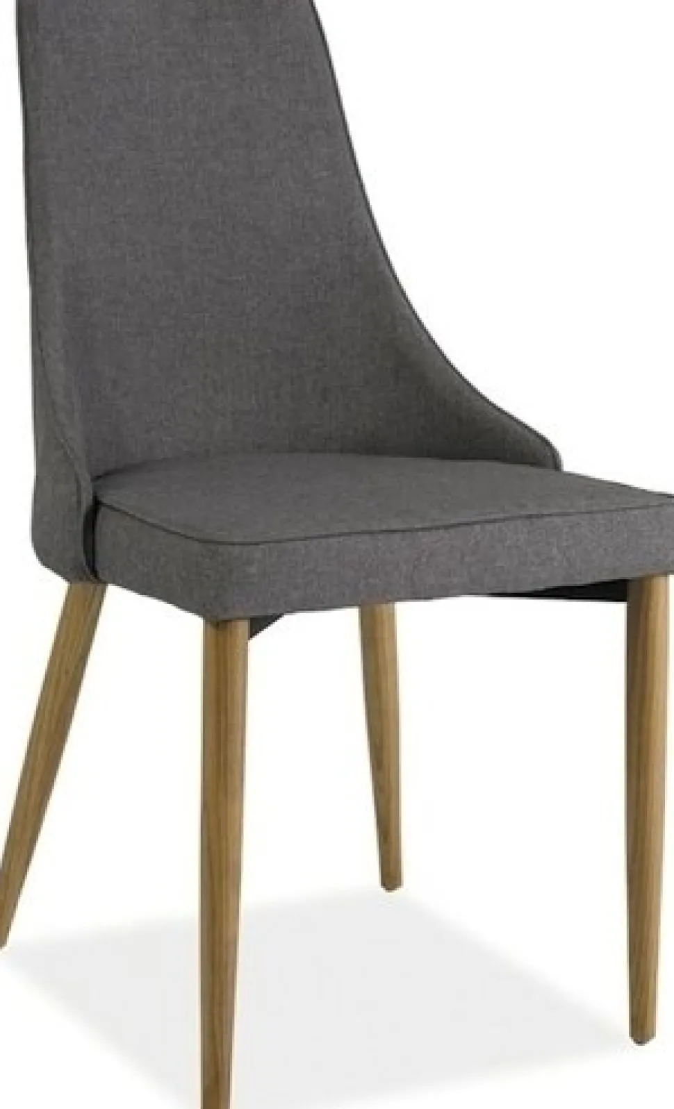 En designstol i grått slitarkt tyg med ekfolierade metallben. Passar både till modern inredning som till retro!