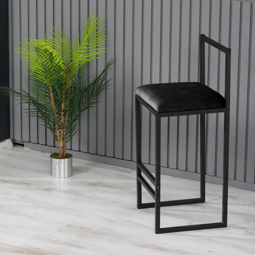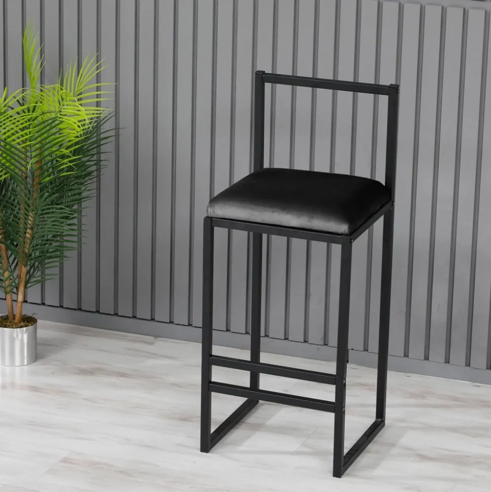 Barstol av metall med klädsel av tyg.