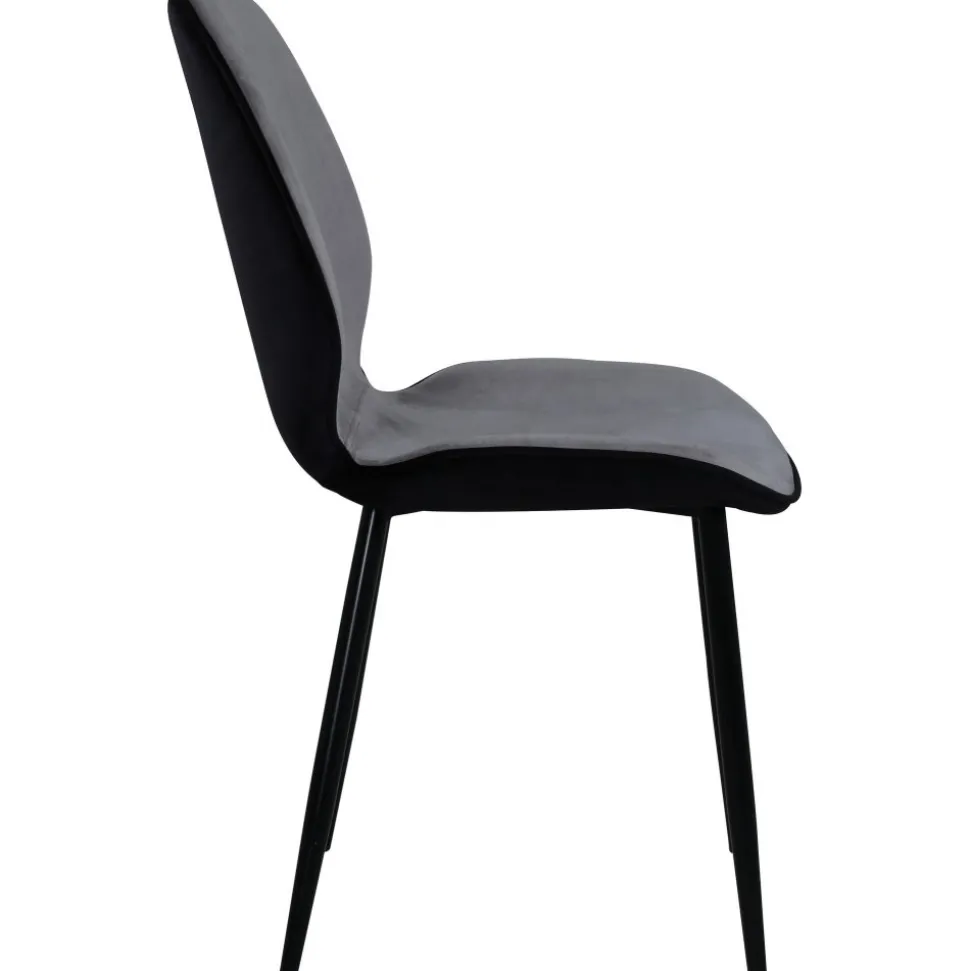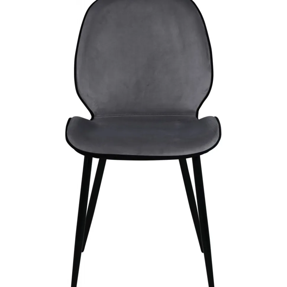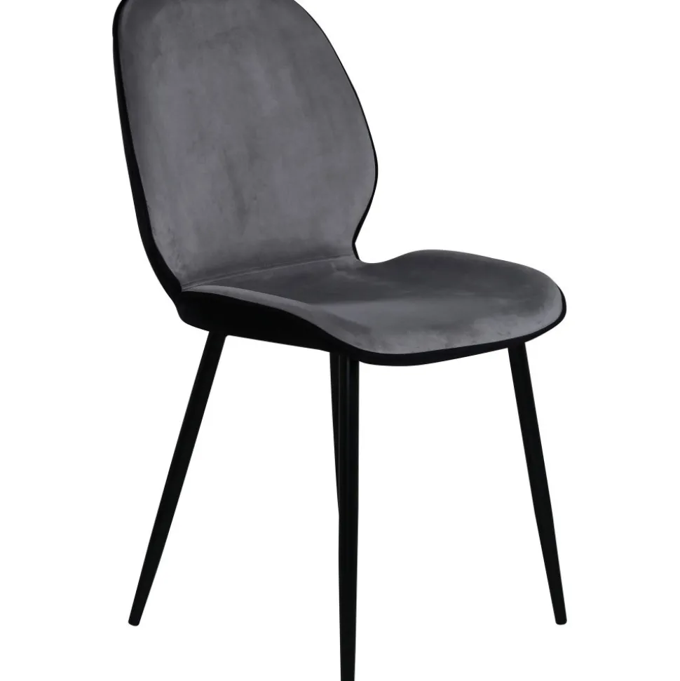 Matstol av järn och plywood, klädd med polyesterlinne och sammet.