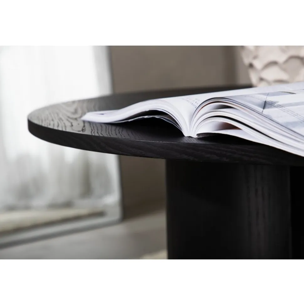 Ta din inredning till nästa nivå med ett som klättrar på trendlistorna! Olivia soffbord är tillverkad i svart MDF med faner och har en cylinderformad uppbyggnad vilket skapar en läcker dimension till bordet. Den runda toppskivan är fanerad och stommen utgörs av tre cylinderformade ben, samlade under bordets mitt. Bordet är otroligt användbart både som soffbord eller sidobord och den nätta storleken gör bordet enkelt att placera och flytta runt i hemmet. Här får du ett modernt sidobord som imponerar med sina mjuka former, stilrena design och trendsäkra kulör!