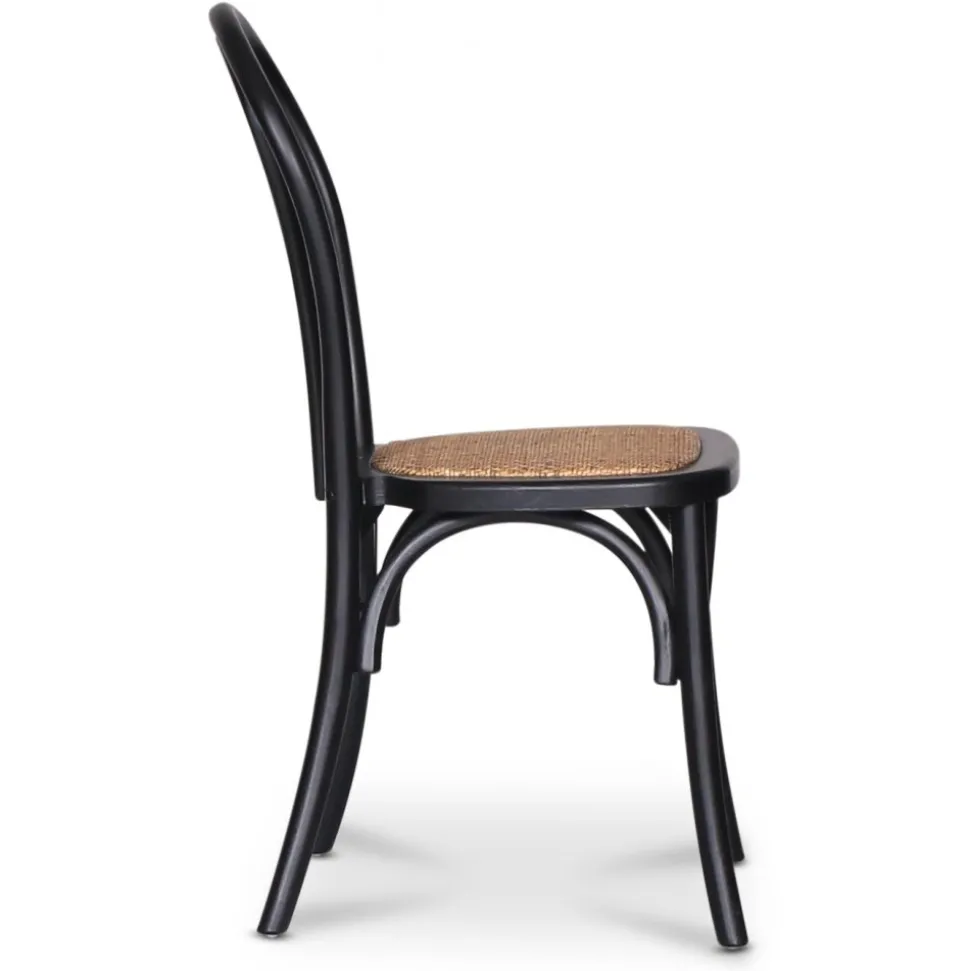 Matgrupp innehållande Omni matbord, serie runda matbord med toppskiva av ekfaner i olika utförande med matchande ben. Ett stilrent och nätt matbord. Ingår gör även 4 st Tony stolar, stomme av svart massiv bok och sits av antikfärgad rotting. Teknik för att böja träet har använts i designen. En stilig stol i neutrala färger, kombinera gärna med ett passande matbord.