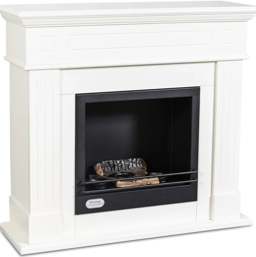 Nottinghill är en vit skorstensfri öppen spis i engelsk inspirerad design med högsta möjliga mysfaktor. Spisen ger en känsla av en vedeldad öppen spis men till Nottinghill behöver du varken skorsten eller ved, utan kan njuta av värmen utan rök. Den hemtrevliga känslan i din inredning höjs till max med denna öppna spis som är enkel att placera i vardagsrummet såsom i sovrummet.
