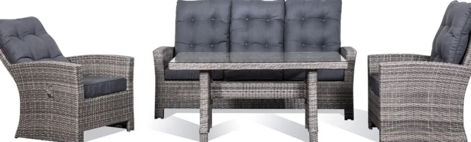 - Orlando utemöbelgrupp hög rygg ställbara fåtöljer – Grå/beige