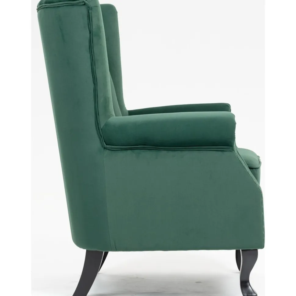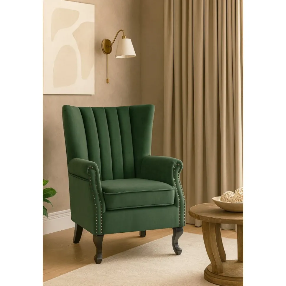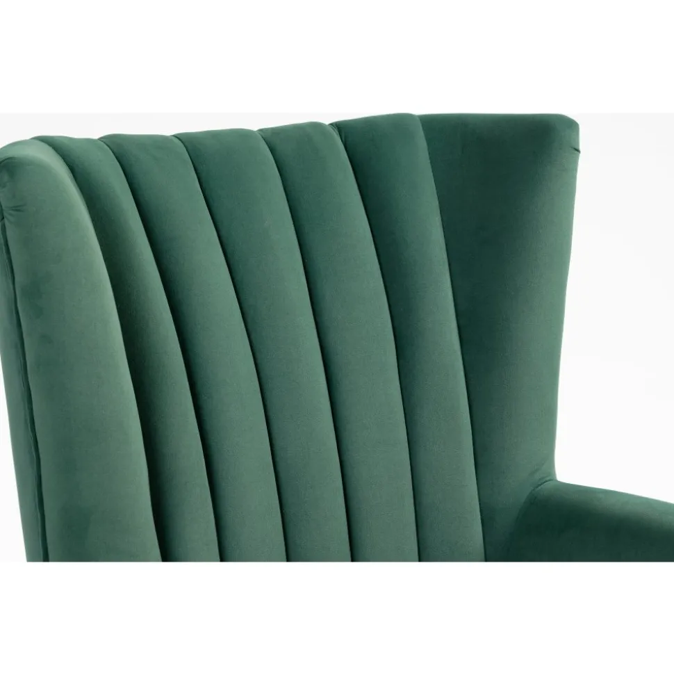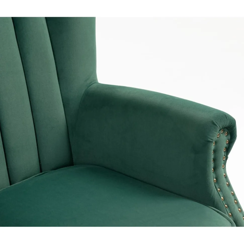 Ge ditt hem en touch av elegans och komfort med vår Rutil grön öronlappsfåtölj. Denna fantastiska är designad för att erbjuda både stil och avkoppling, vilket gör den till ett utmärkt val för alla rum i huset. Den djupgröna sammetstyget ger fåtöljen en lyxig känsla och en rik färg som kommer att lysa upp ditt utrymme. Öronlapparna ger inte bara en klassisk charm, utan erbjuder också extra stöd och avskildhet, vilket gör den idealisk för avkoppling med en bok eller för att njuta av ditt favoritprogram.