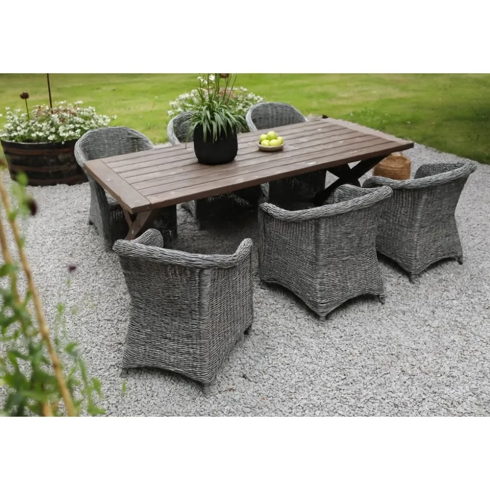 Inklusive 6 st Mercury fåtöljer i matchande grå konstrotting med sittdyna och ryggdyna för bästa komfort. Matgruppen passar perfekt på altanen, uteplatsen och i uterummet.