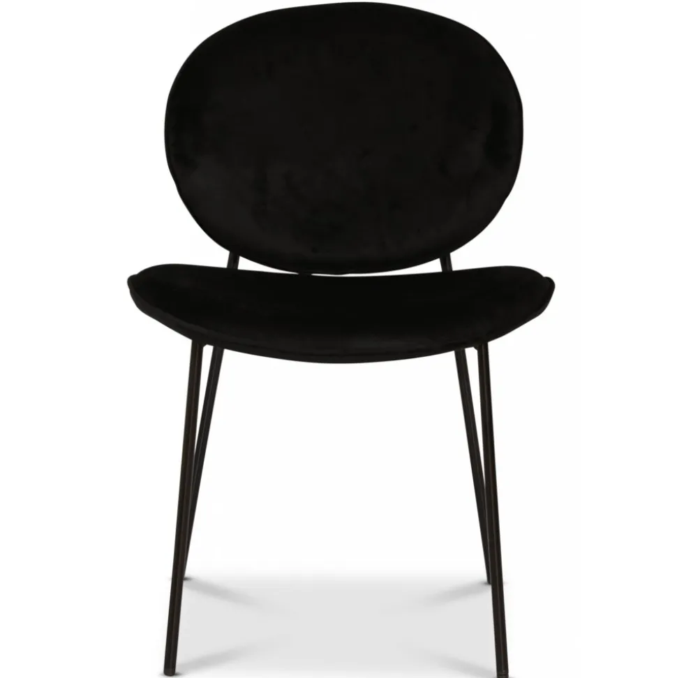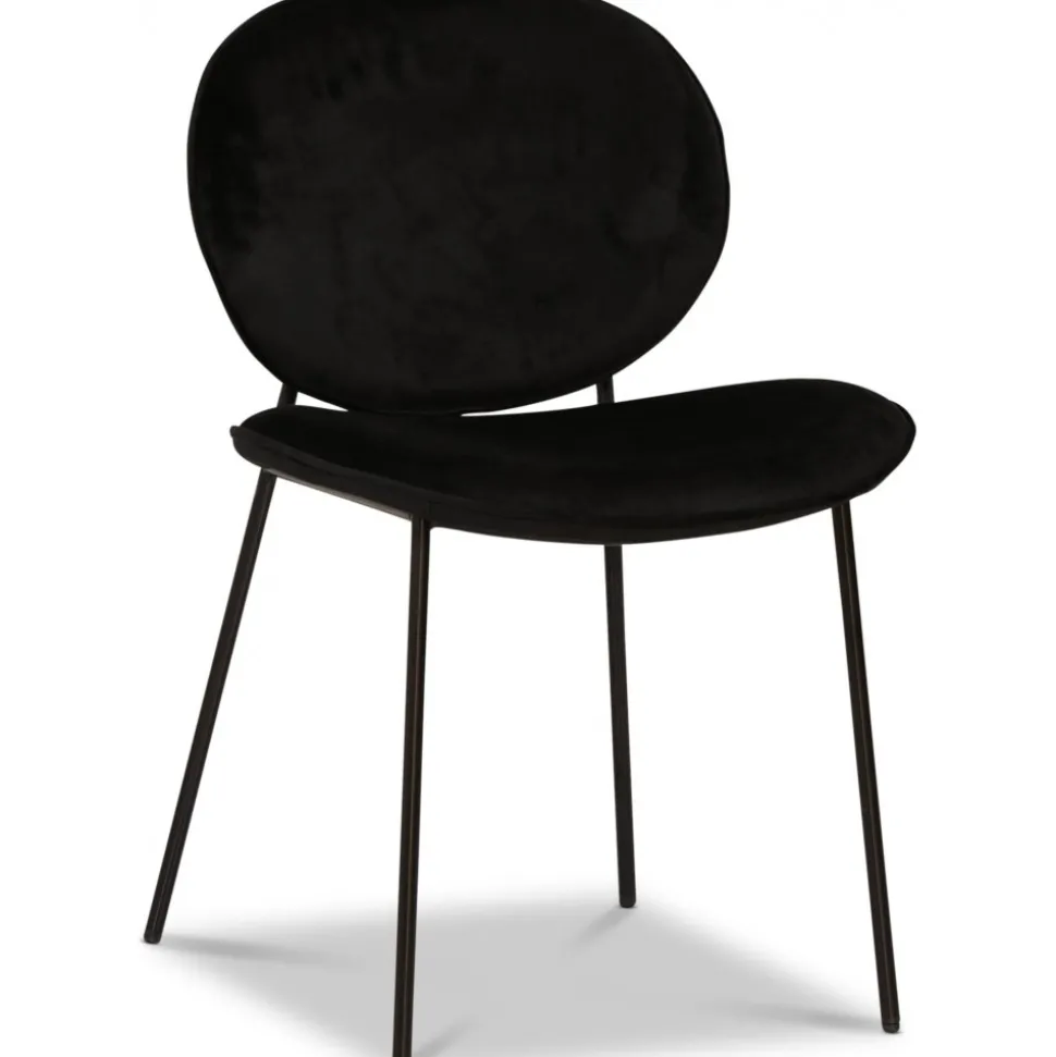 Modern stol klädd i ett svart sammetstyg, svarta ben av metall. Serien innehåller i fler färgkombinationer.