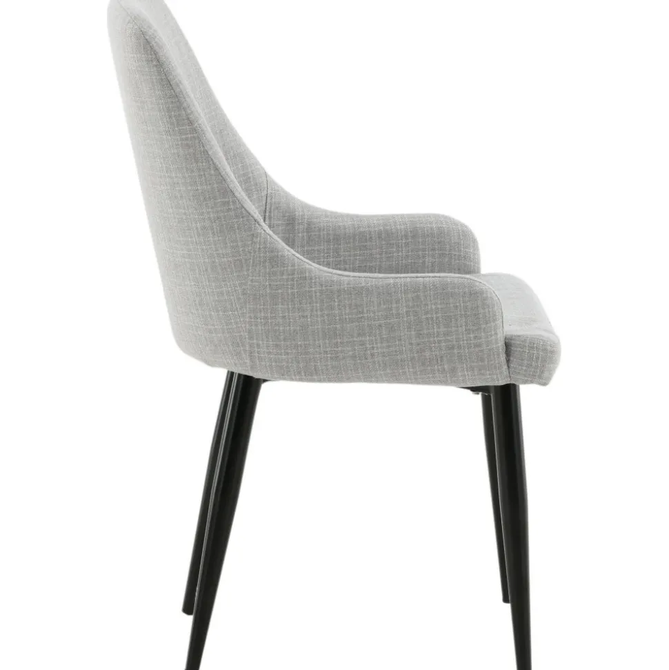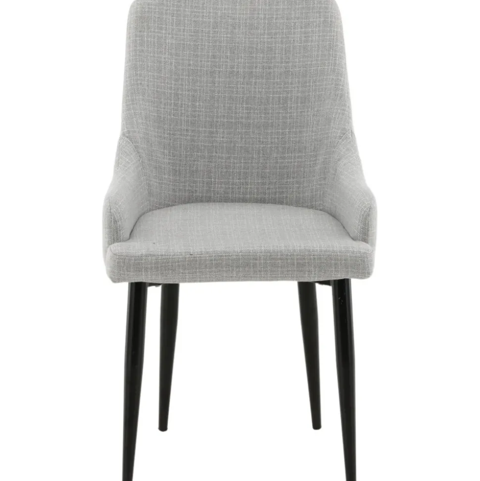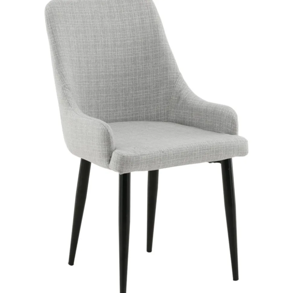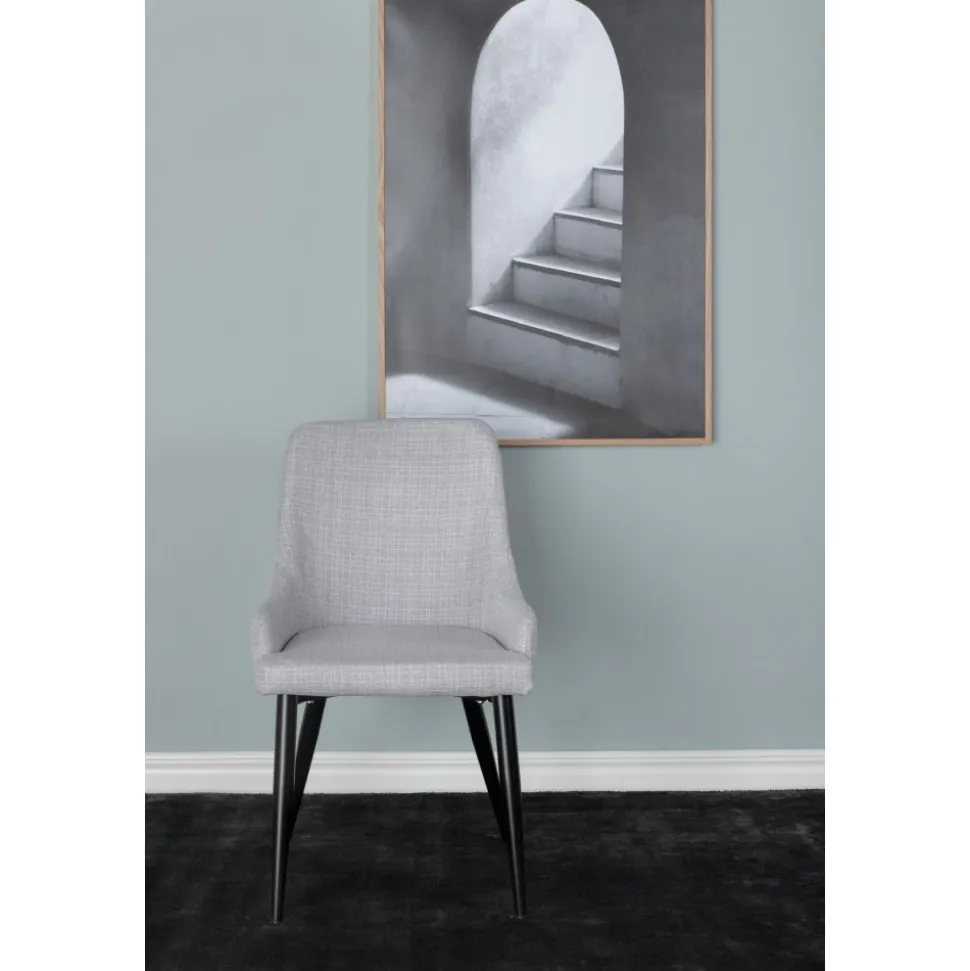 Matstol av metall och trä, klädd med polyestertyg.