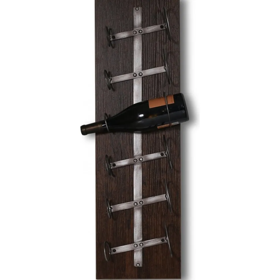 Paris vägghängda är en stilfull och praktisk lösning för vinälskare som vill visa upp sina favoritviner på ett elegant sätt. Med plats för upp till 6 vinflaskor kombinerar detta vinställ funktionalitet med en nostalgisk estetik. Den bruna vintagefolierade MDF-konstruktionen ger ett tidlöst utseende som passar in i många olika inredningsstilar, från lantligt och bohemiskt till modernt och industriellt. Den metallhållare som används för flaskorna är både slitstark och stilren, vilket bidrar till en säker och stabil förvaring för dina viner.