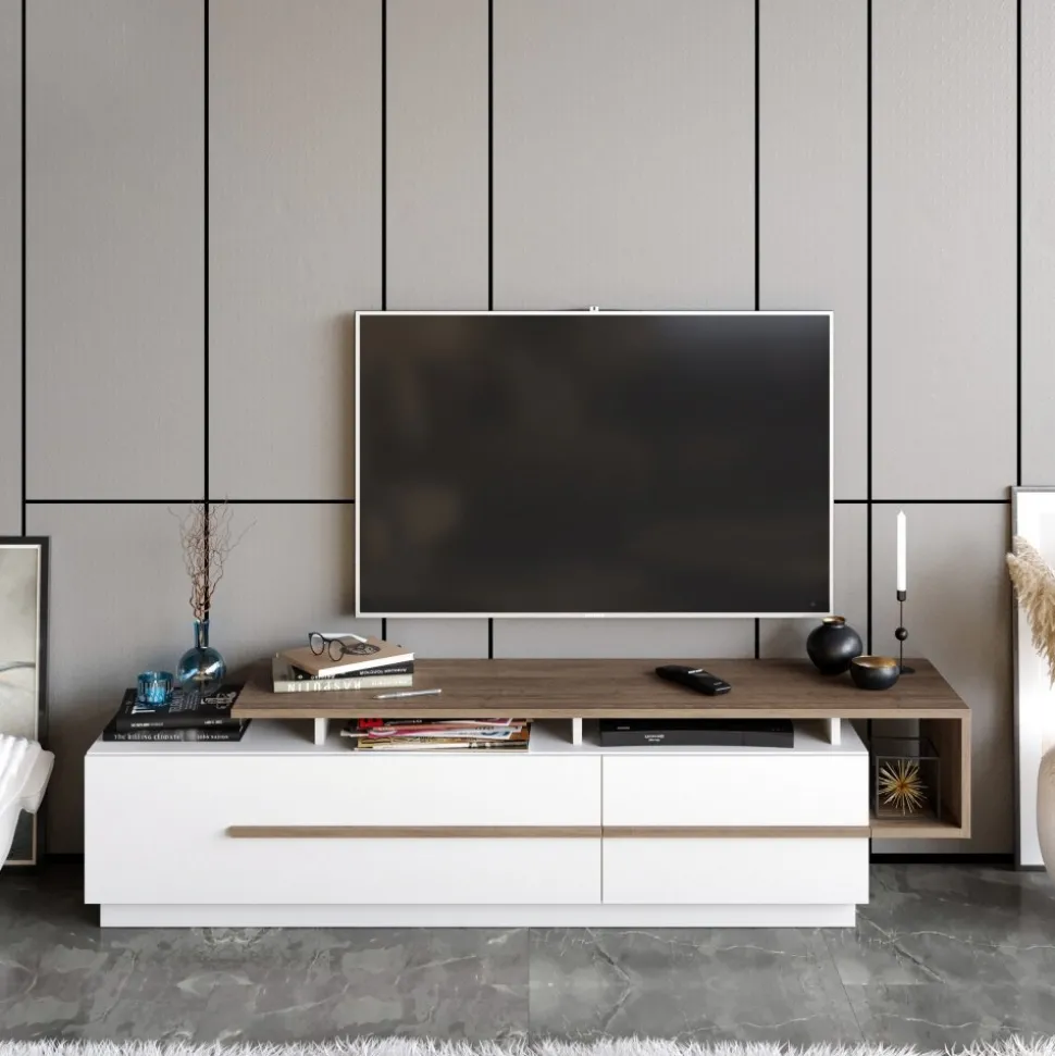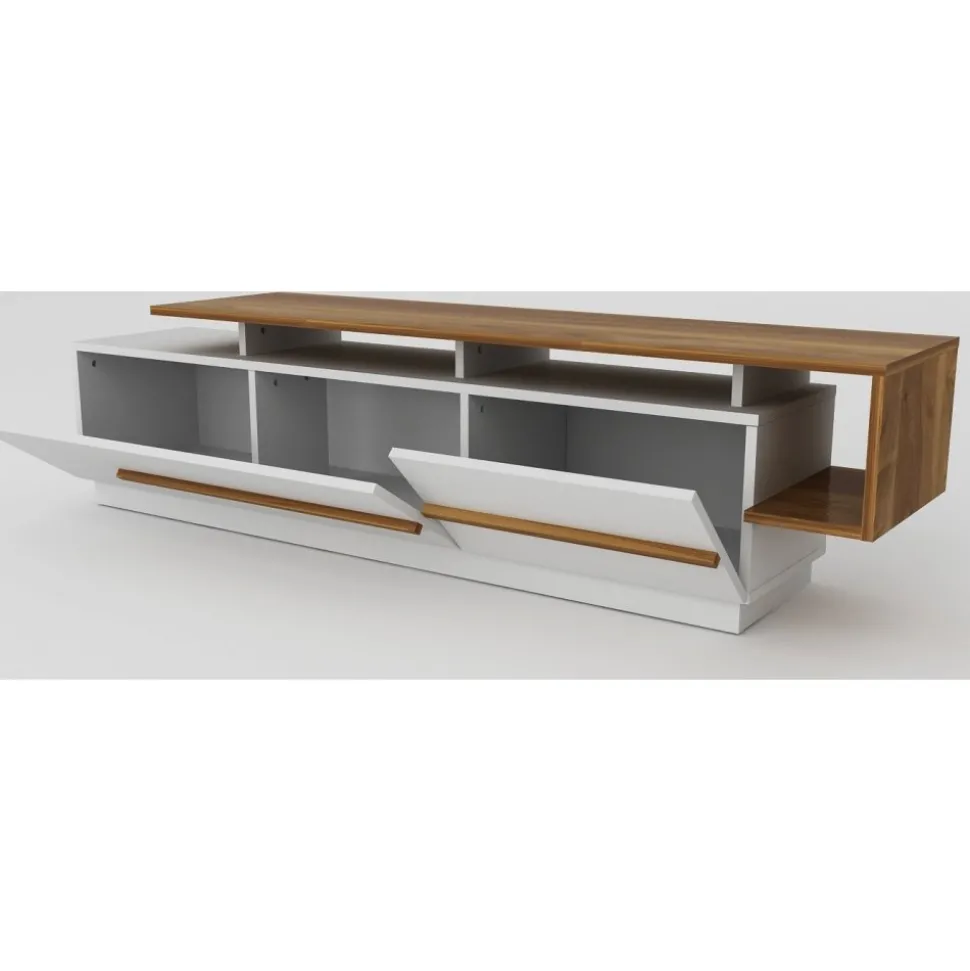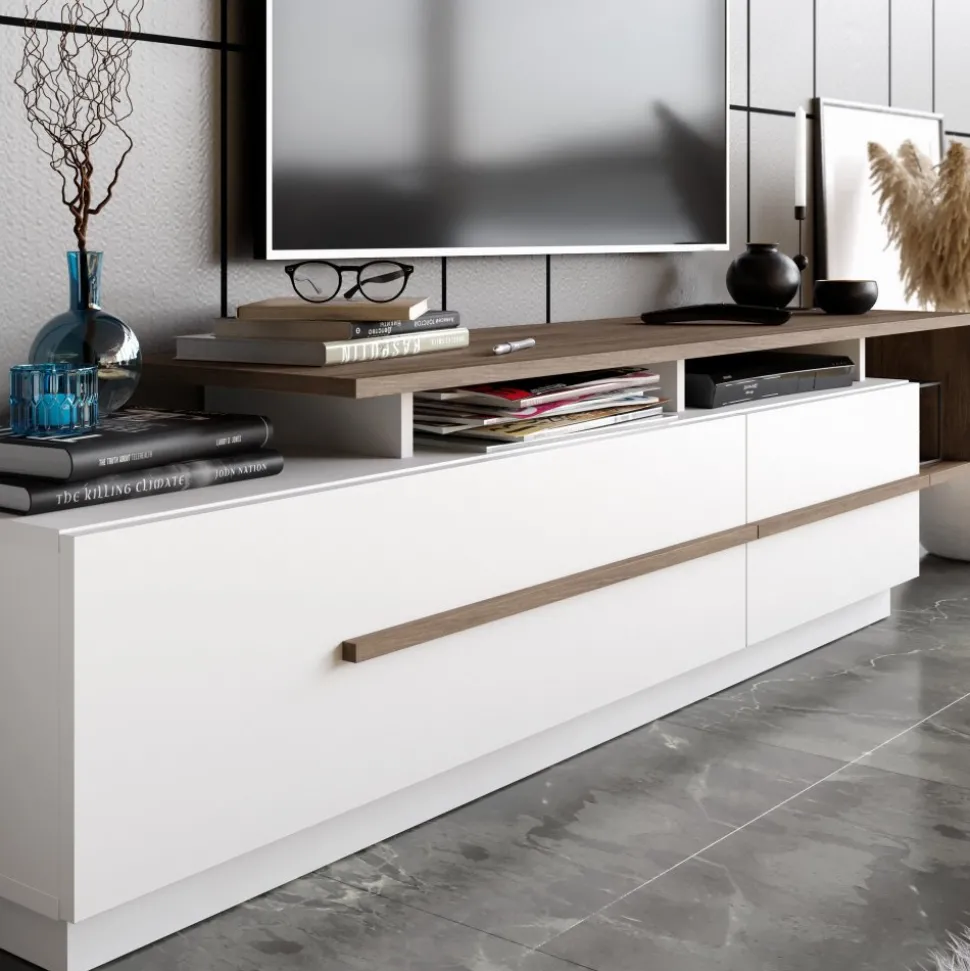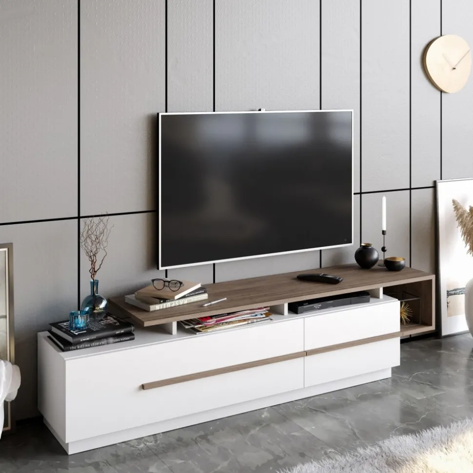 Mediabänk av melaminbelagd spånskiva.
