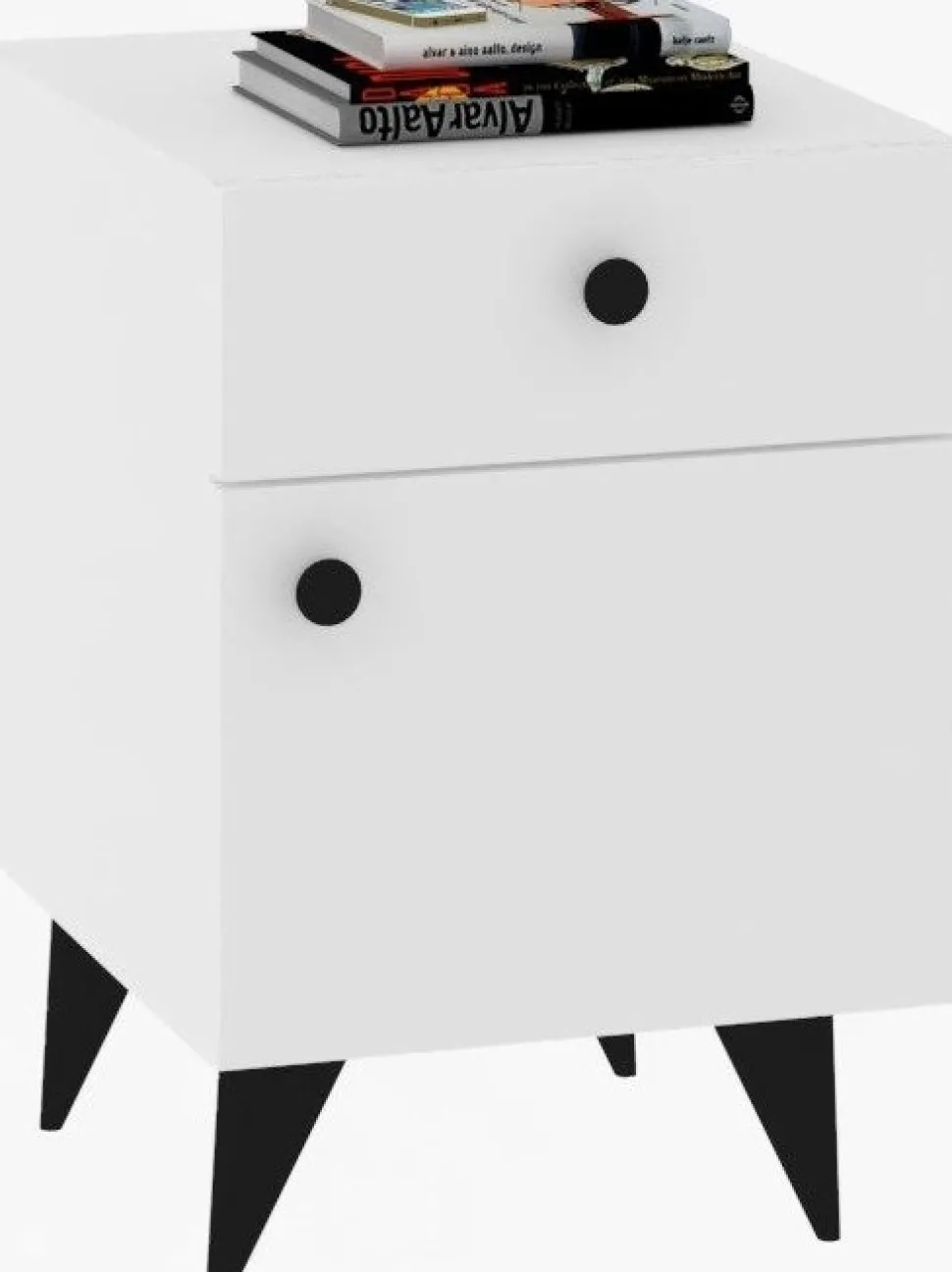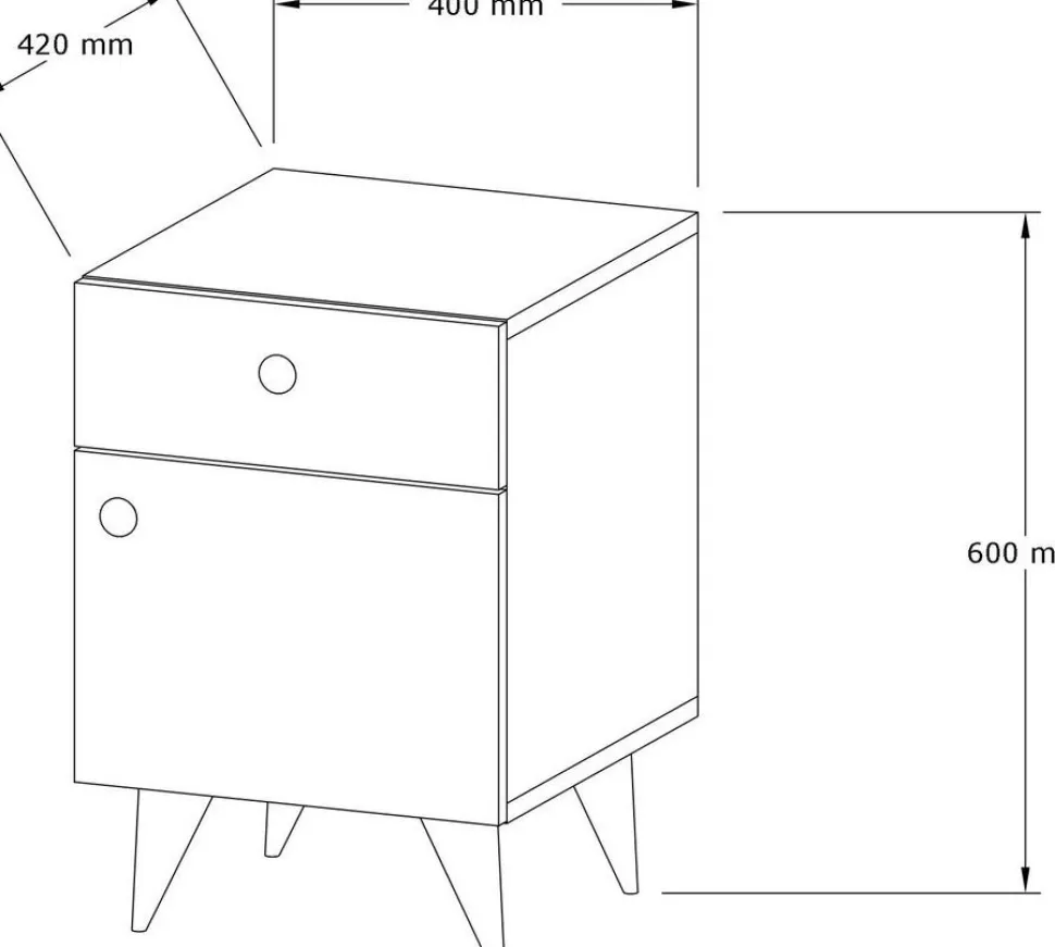 Sängbord av melaminbelagd spånskiva.
