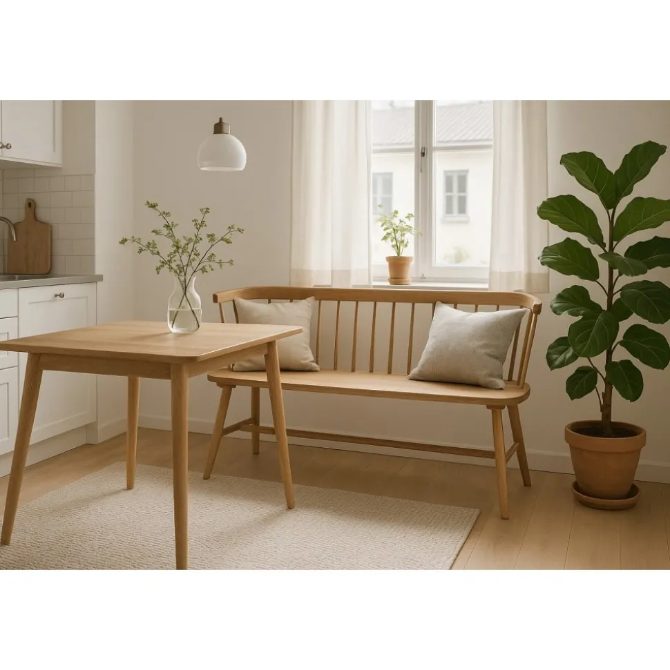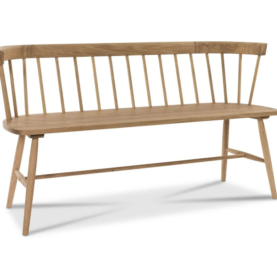 Sandhamn pinnsoffa är en tidlös kökssoffa i klassisk retrodesign. Tillverkad av massiv ek med en vacker oljad yta som lyfter fram träets naturliga ådring och karaktär. Soffan kombinerar både funktionalitet och charm, och passar lika bra vid matplatsen som i hallen eller uterummet.