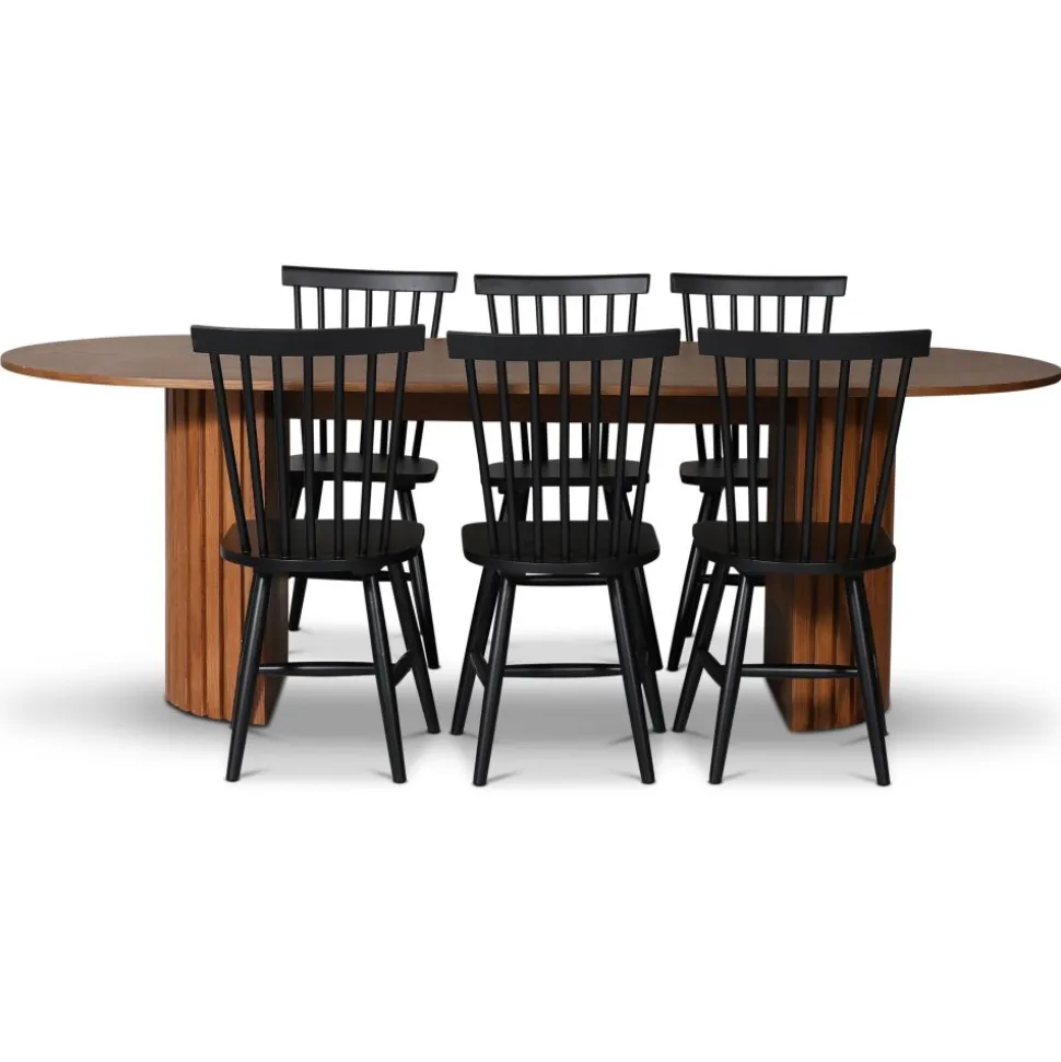 PiPi 230 cm inkl. 6 st Karl svarta pinnstolar – Valnöt: