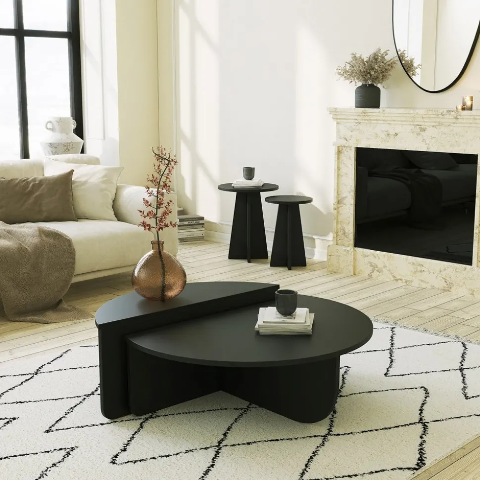 Satsbord valnöt/svart Ø43/53 cm – Tore + Textilrengöring för möbler