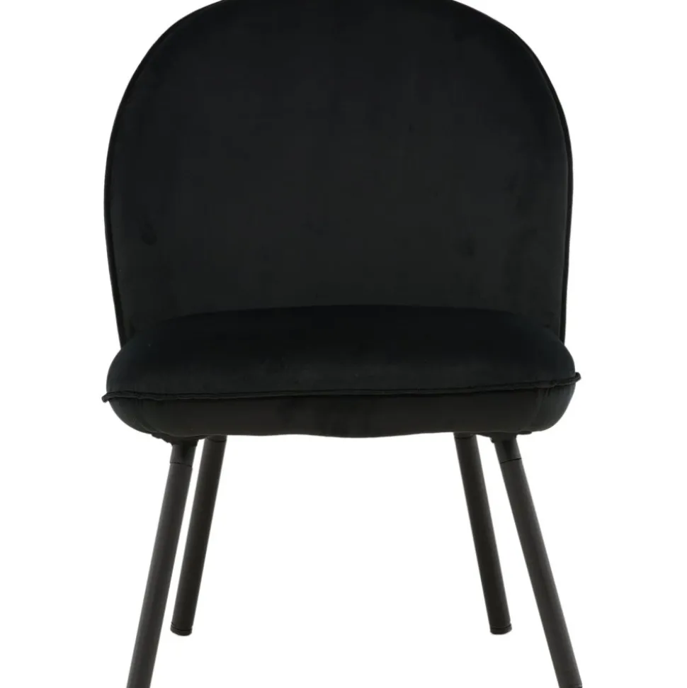 Den här stilsäkra fåtöljen har en genomgående svart kulör med en mjuk sits i sammetstyg och utsvängda ben i svart metall. Den skandinaviska designen är genomtänkt med en rundad utformning och bra balans mellan stil och komfort. Möblera intill soffgruppen eller solitär i läshörnan! Levereras omonterad.