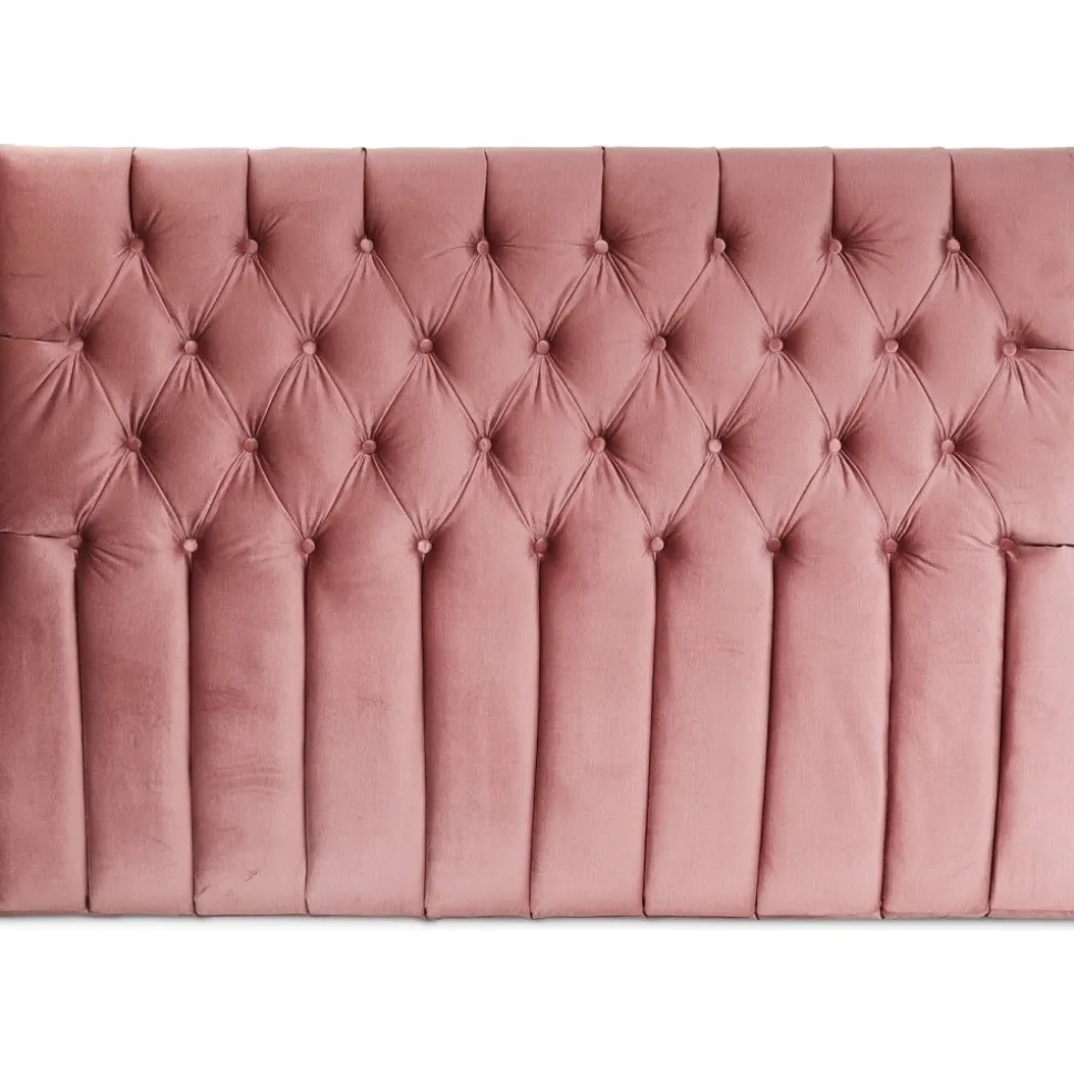 Sänggavel Presley i ett rosa sammetstyg med en mjuk känsla. Snygg design med djuphäftade knappar för att ge ett lyxigt utryck i sovrummet.