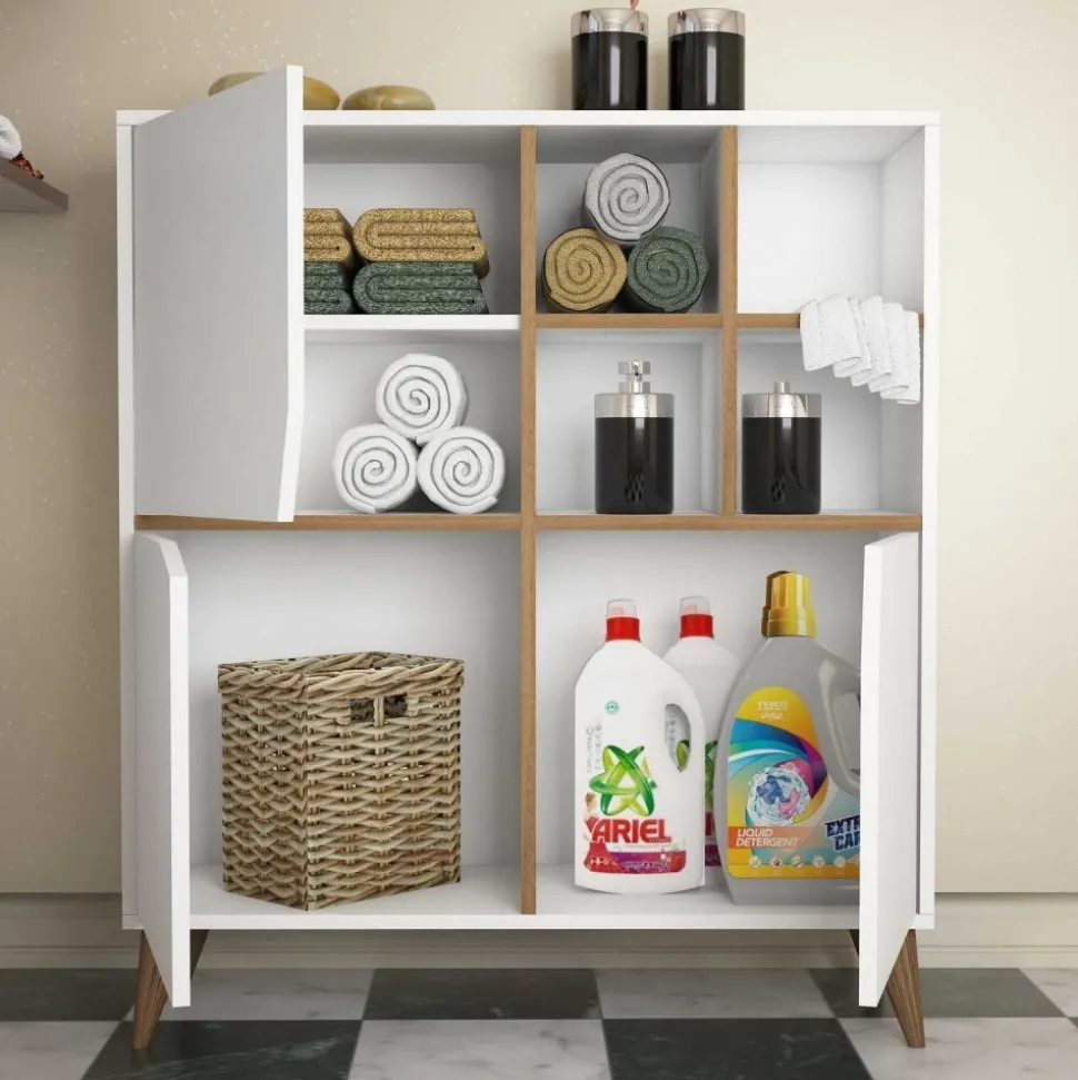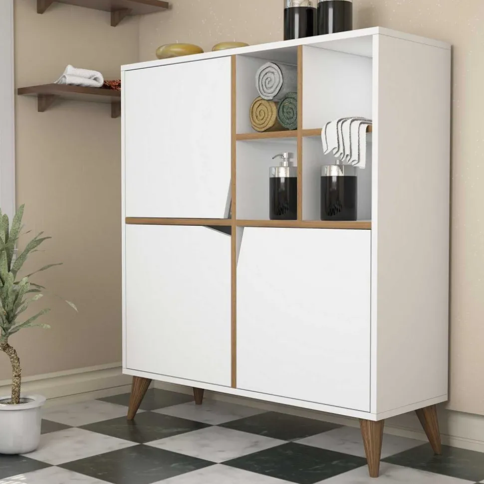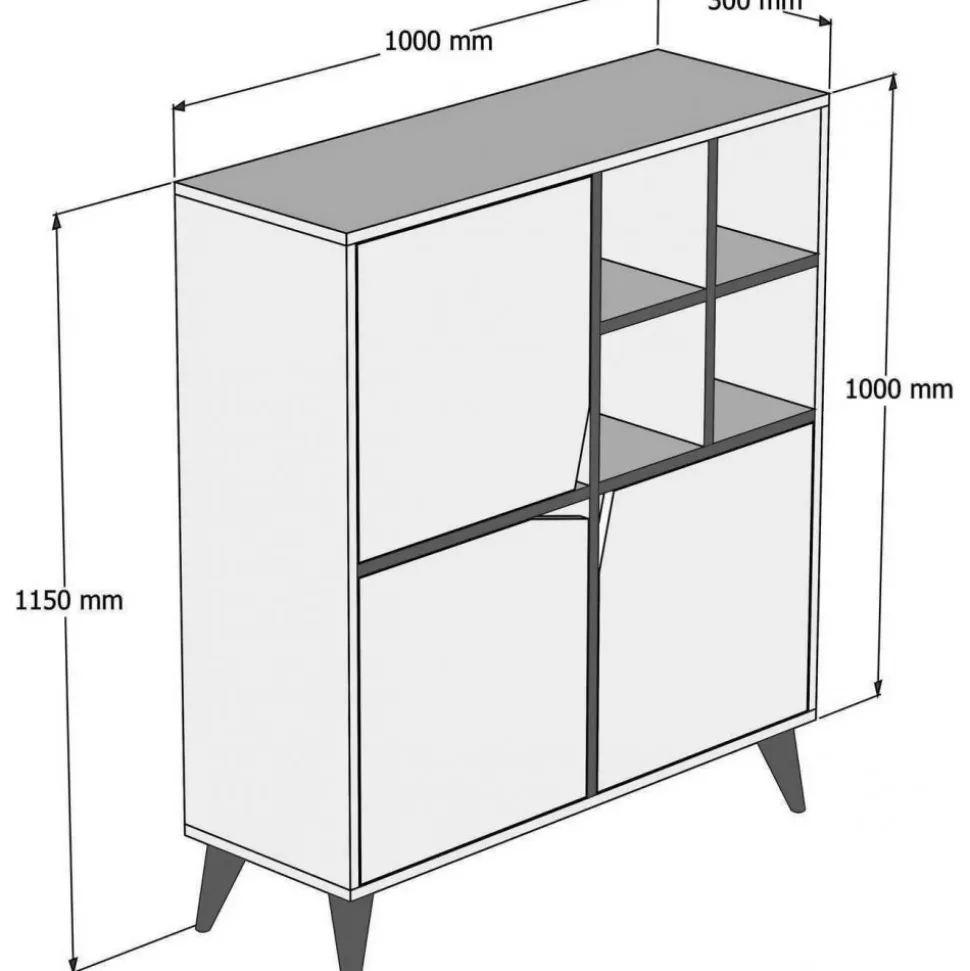 Skåp av melaminbelagd spånskiva.