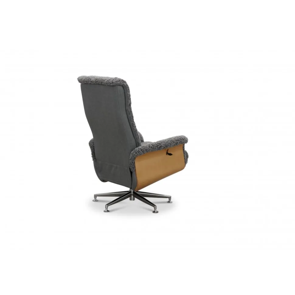 - Reclinerfåtölj med fotpall i äkta fårskinn ek/grafitgrå – Ulla